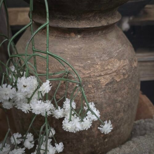 Landelijke kruik met oren crème grijs – kleine pot vergrijsde look