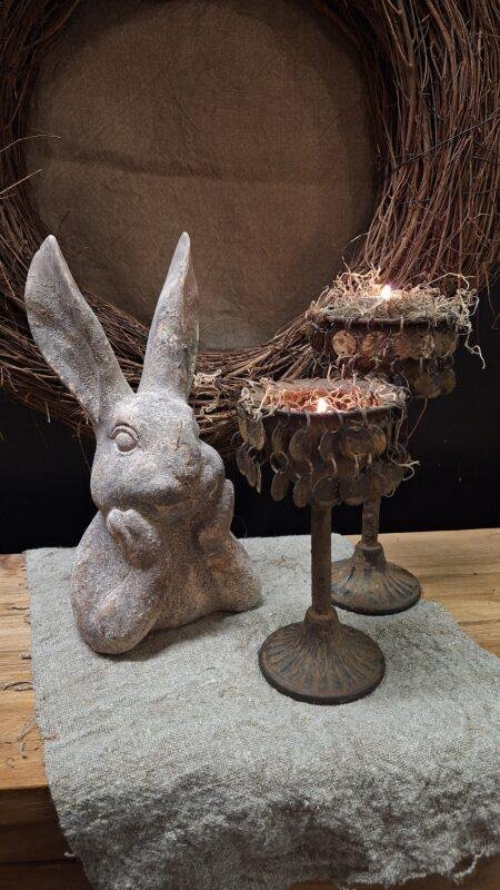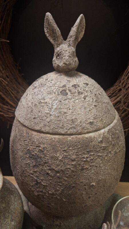 Stenen pot met deksel konijn – landelijk sobere decoratiepot