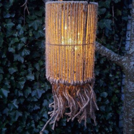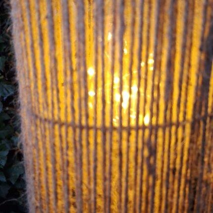 Sfeervolle solar lantaarn in geribbeld glas, in warme bruintinten. Verschillende tinten mogelijk, willekeurig geleverd. Perfect voor tuin, balkon of overkapping.