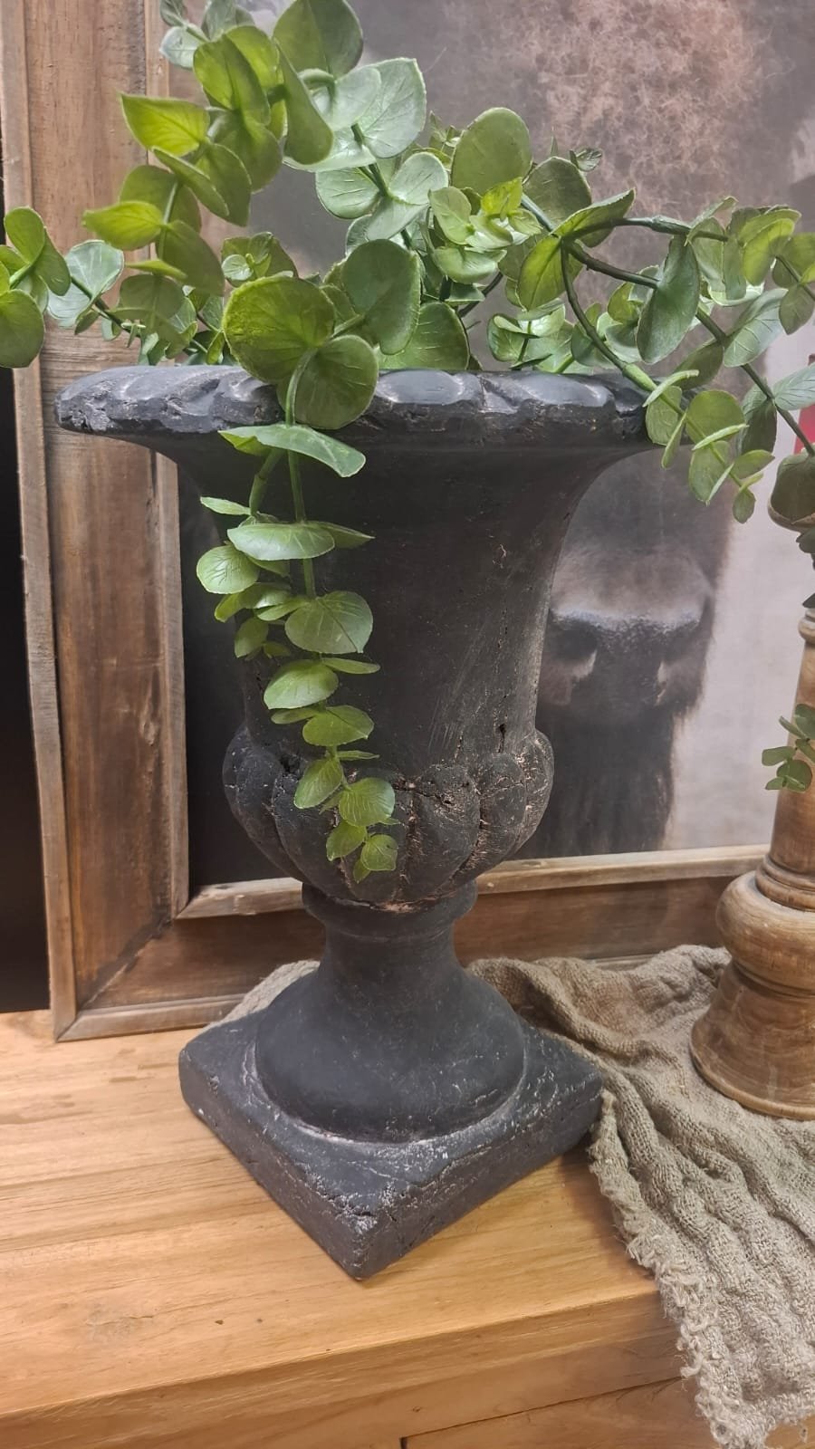 Landelijke bloempot Hilmar L in oud grijs. Stoer, robuust en perfect voor een sober interieur.