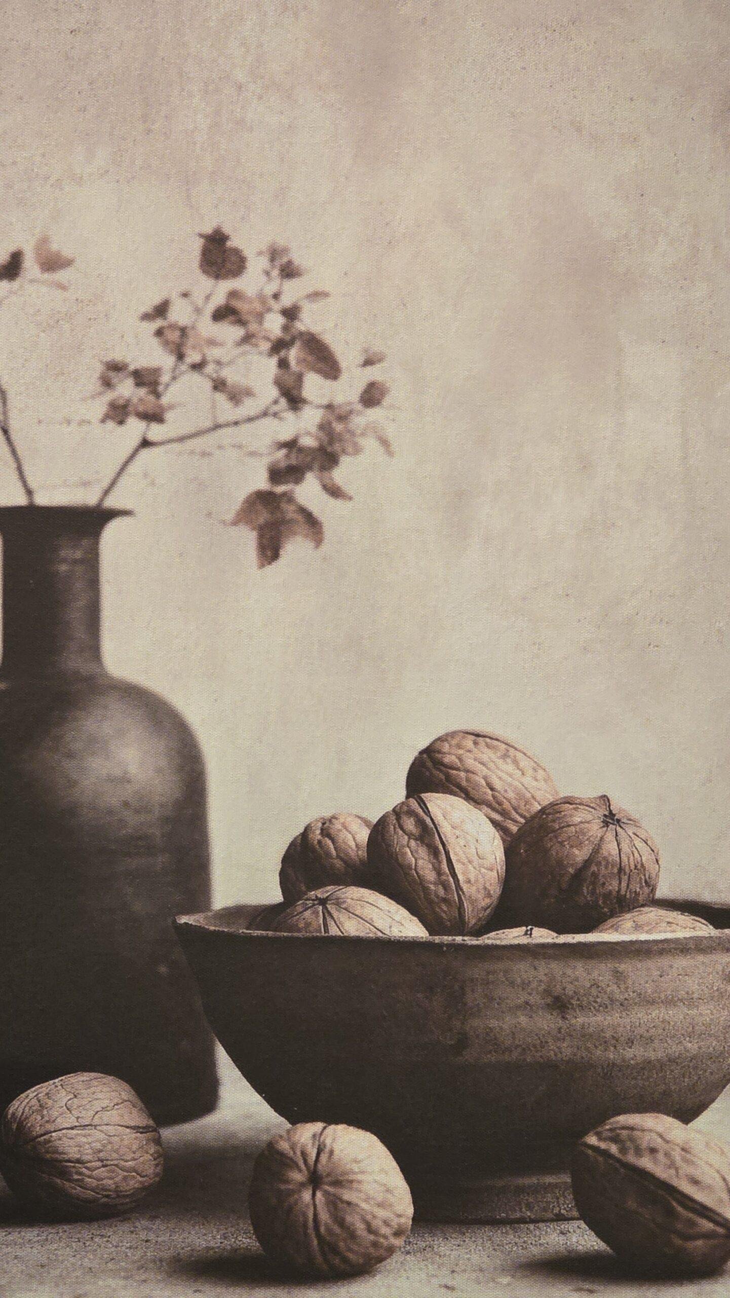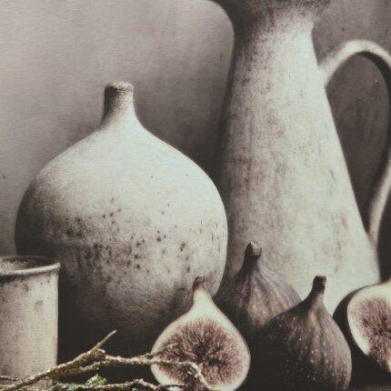 De combinatie van de schaal, kruik en natuurlijke materialen geeft dit schilderij een rustige en sobere uitstraling. Hierdoor past het perfect binnen een landelijk interieur.
