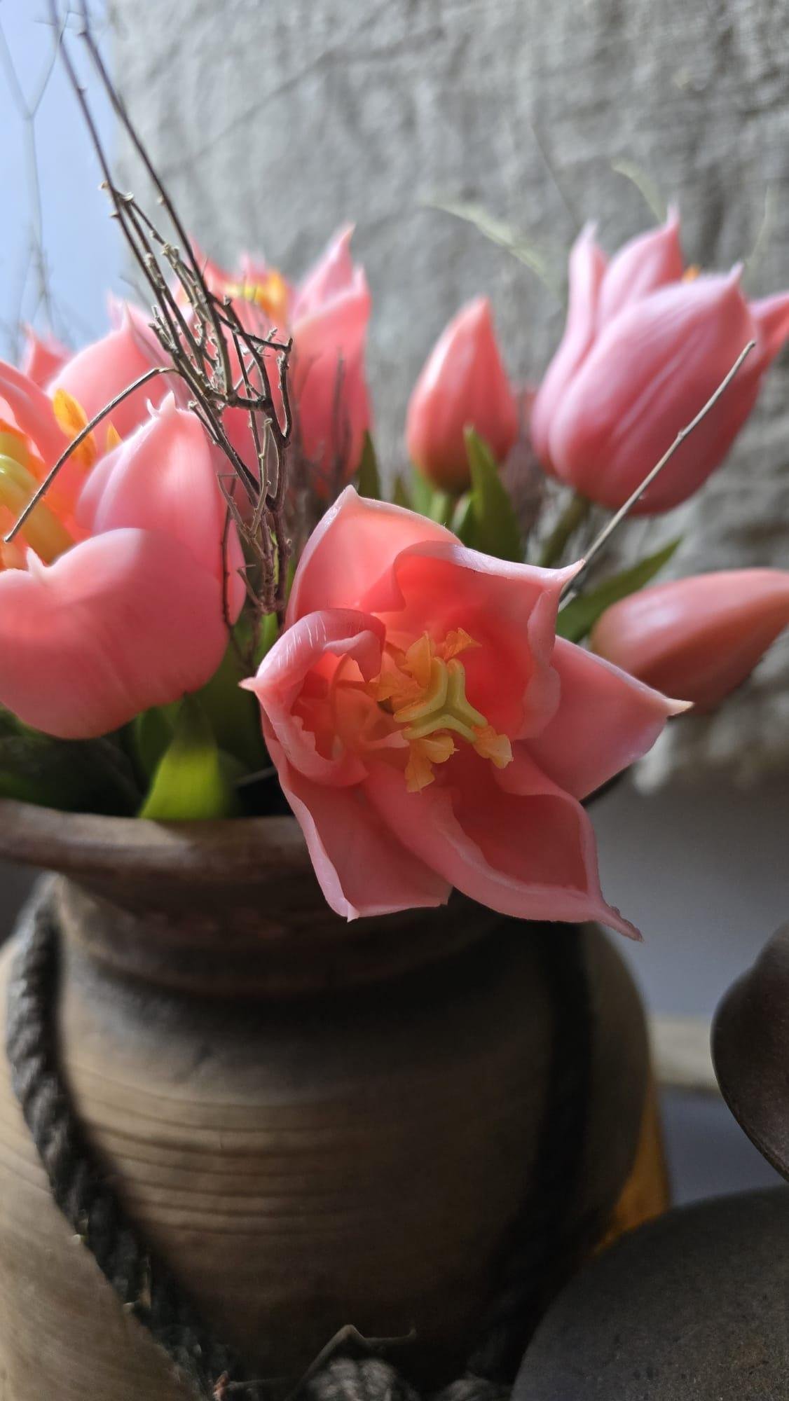 De Tulip Greigii staat bekend om zijn volle bloem en zachte uitstraling. Dat maakt dit kunstboeket geschikt voor elk seizoen en voor verschillende interieurstijlen: landelijk, sober, stoer maar ook rustig modern. Het boeket behoudt altijd zijn vorm en kleur en blijft jaar na jaar mooi.