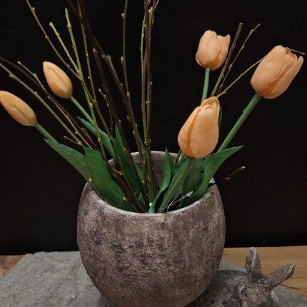 Een sfeervol kunstboeket tulp zalm van Countryfield met een natuurlijke uitstraling. Onderhoudsvrij, compact van formaat en perfect voor een landelijke of sobere styling.
