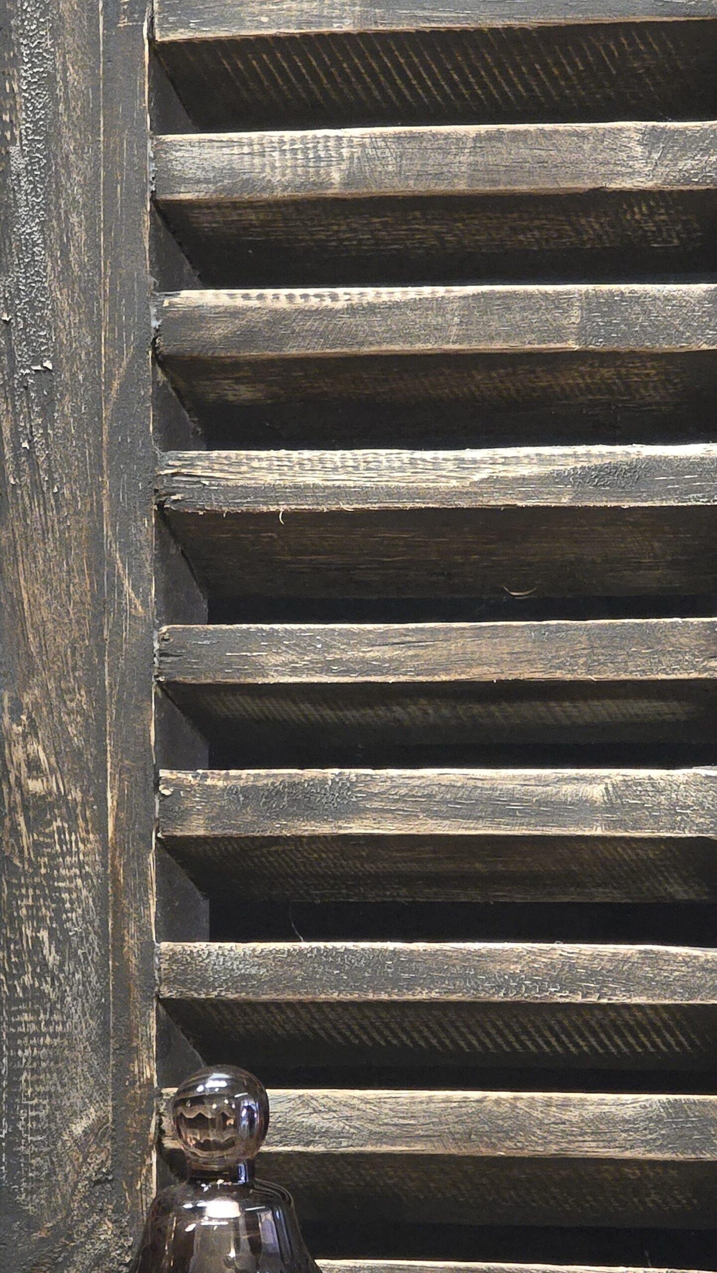 De open lamellenstructuur zorgt voor diepte in je styling en laat het licht mooi door. Door de natuurlijke onregelmatigheden in het hout is elk luik uniek. Geen massaproductie, maar een authentiek decoratief stuk dat past binnen een landelijke, sobere en stoere woonstijl.