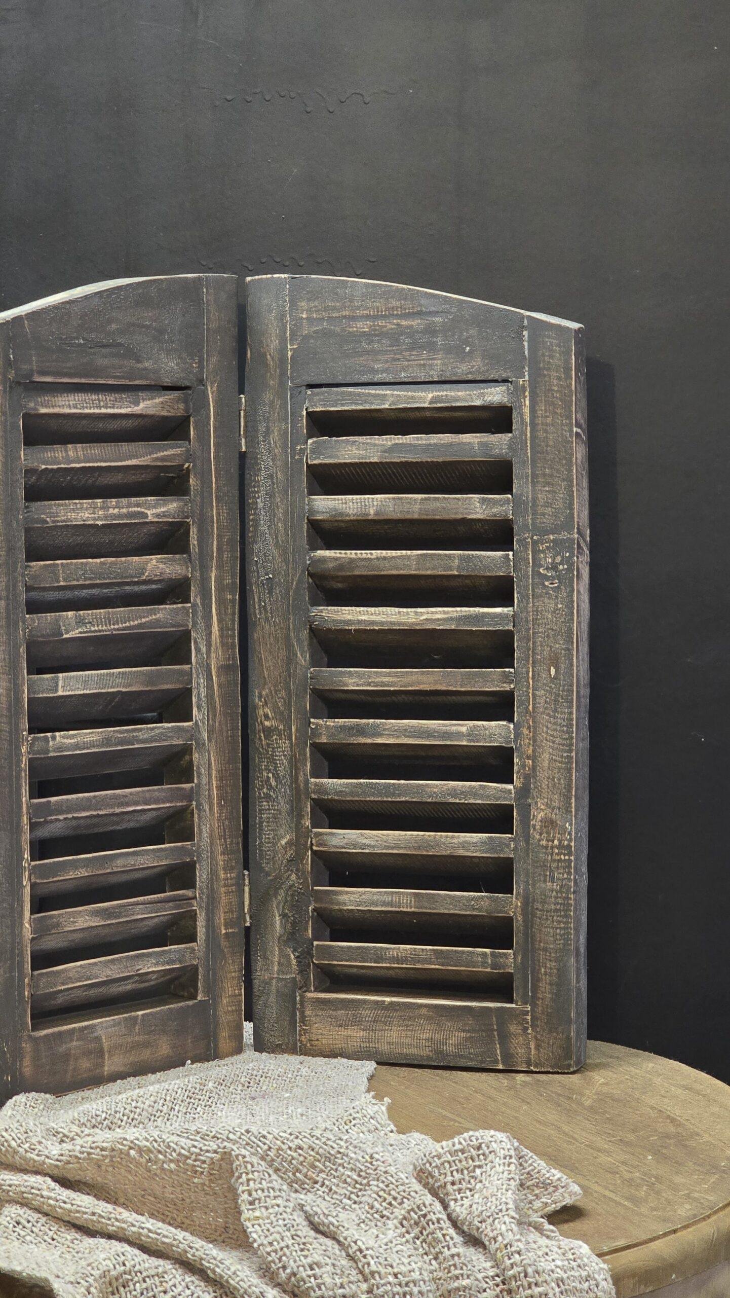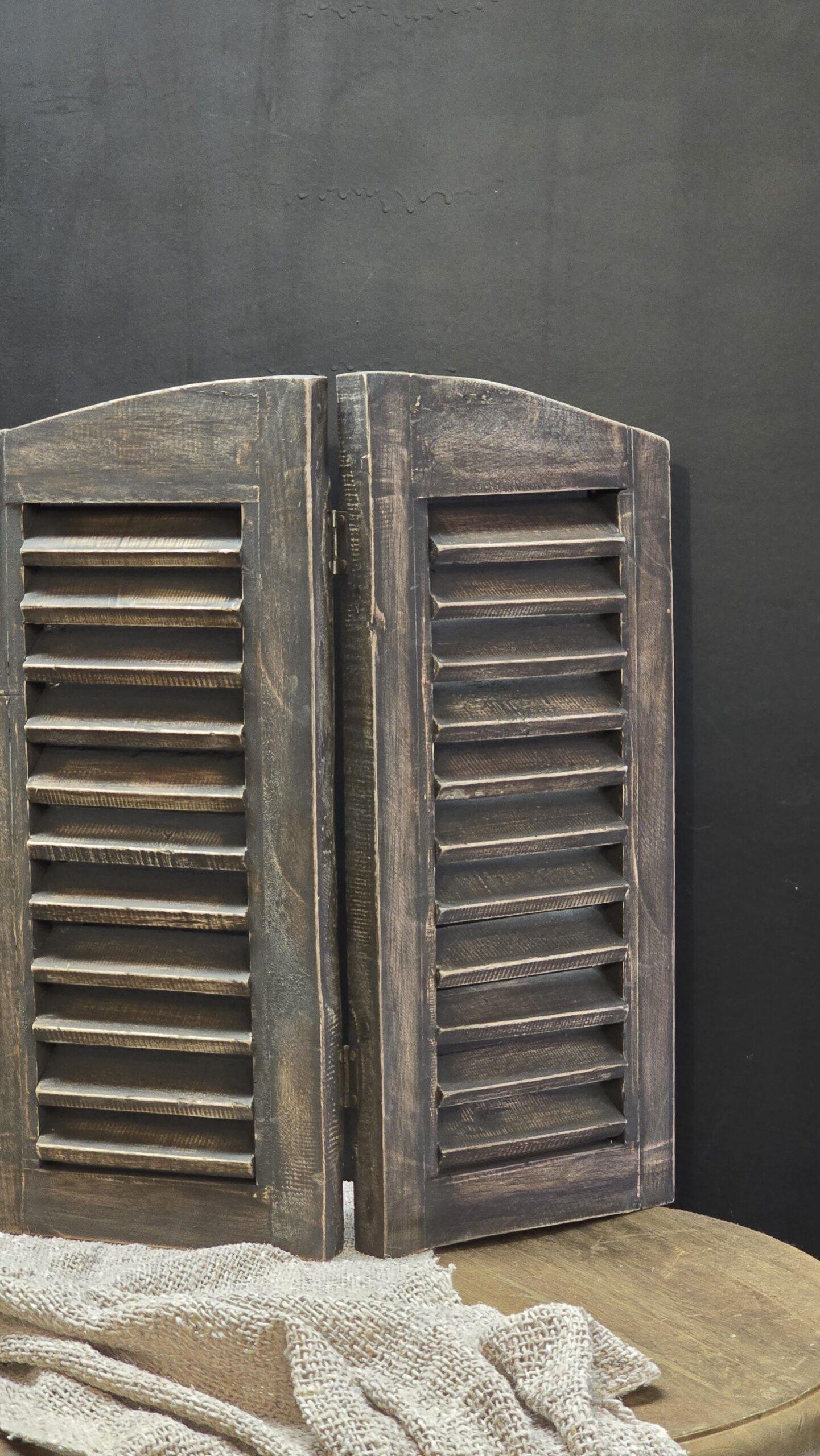 Stijlvol dubbel louvre luik vintage grijs. Afmeting ca. H50xB44 cm. Perfect als decoratie op een kast, schouw of voor het raam. Combineer met kaarsen, kransen of een ornament voor een warme landelijke sfeer.