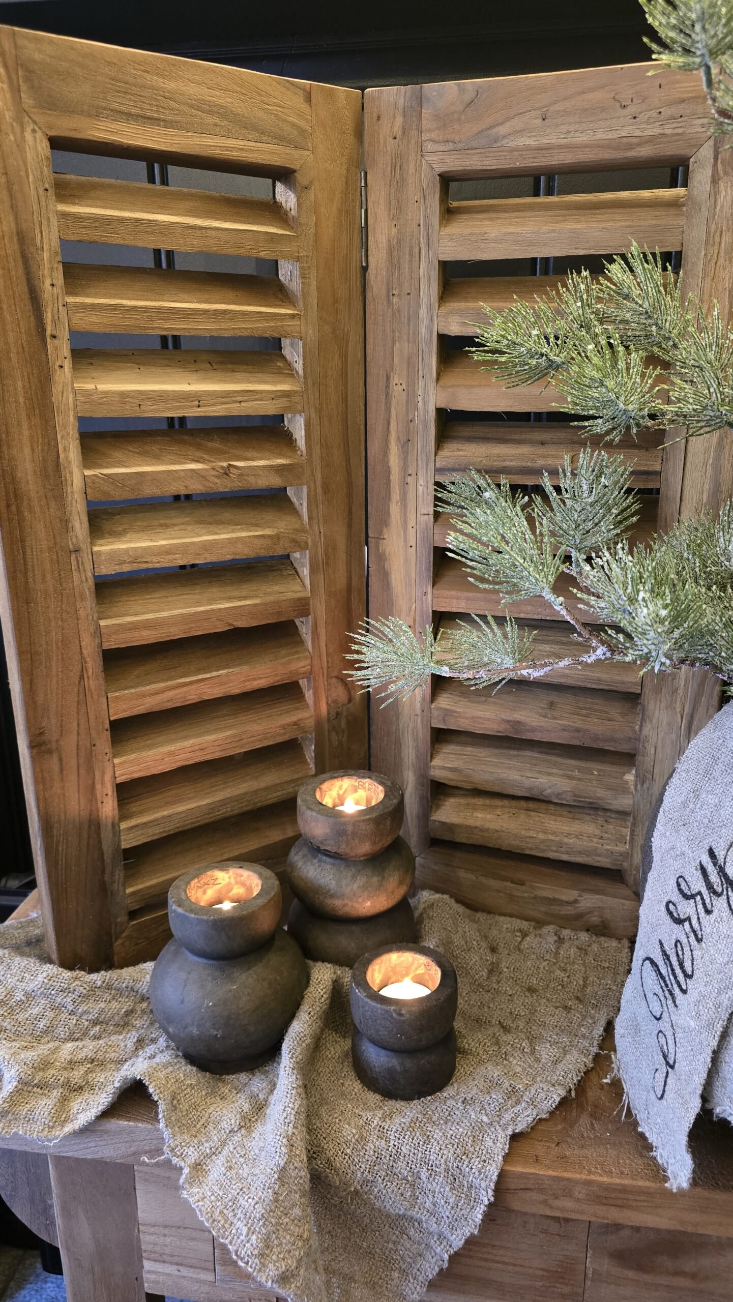 Breng karakter en warmte in je interieur met deze prachtige dubbele louvre luiken van teakhout. Met een breedte van 60 cm voegen deze luiken een authentieke, rustieke uitstraling toe aan elke ruimte. Het teakhout heeft een geleefde look, die zorgt voor een tijdloos en doorleefd gevoel, perfect voor wie houdt van een sfeervolle, landelijke of brocante inrichting.
