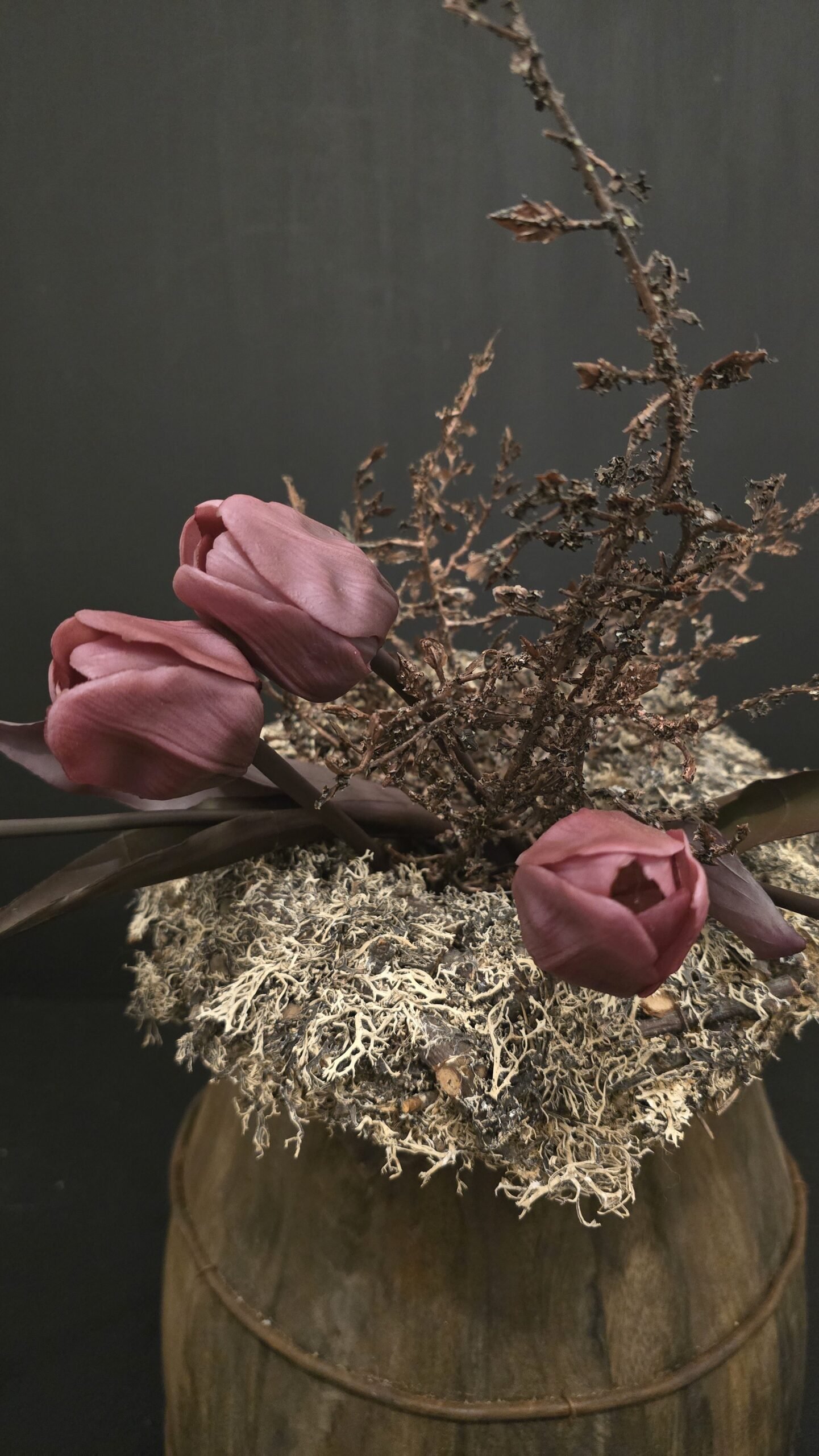 Met de Enkele tulp donker paars donker blad haal je niet alleen een decoratief element in huis, maar ook een blijvende herinnering aan de pracht van het voorjaar. Ervaar de magie van bloemen, ongeacht het seizoen, en laat je omringen door de tijdloze schoonheid van deze kunstige creaties.