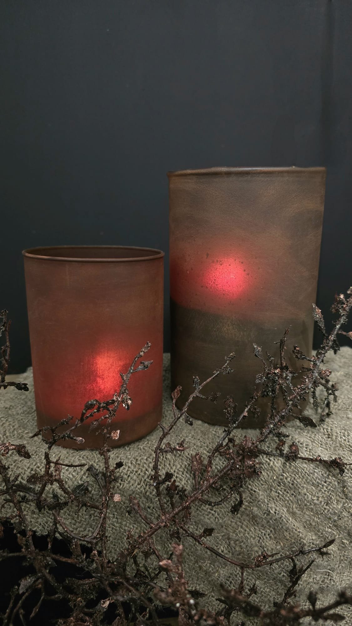 ✅ Gezellig kaarslicht – Het warme schijnsel schijnt sfeervol door het glas en de roestlaag heen.