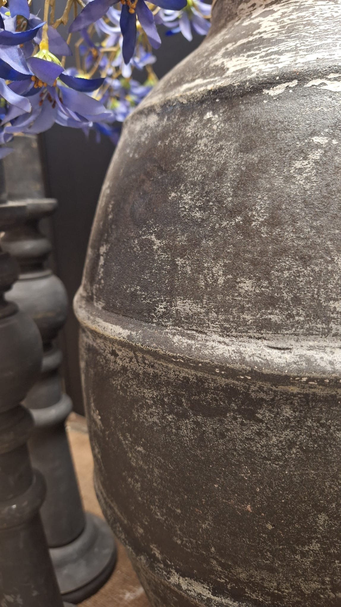 Deze grote zwarte kruik landelijke stijl is een indrukwekkend decoratie-item voor jouw sobere of stoere interieur. De ruwe afwerking, verweerde zwarte tinten en authentieke vorm maken van deze kruik een echte blikvanger. Door zijn royale formaat komt hij prachtig tot zijn recht op de vloer naast een kast, bij een entree of als hoekvulling bij een landelijke open haard.