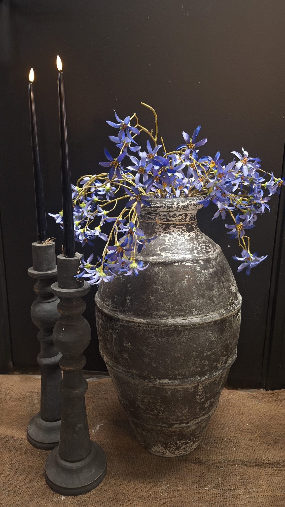 De uitstraling van deze kruik is stoer en rustiek tegelijk, waardoor hij moeiteloos past in elk interieur met landelijke invloeden. De grote zwarte kruik straalt eenvoud en kracht uit – perfect te combineren met robuuste kandelaars, houten accessoires of gedroogde takken.