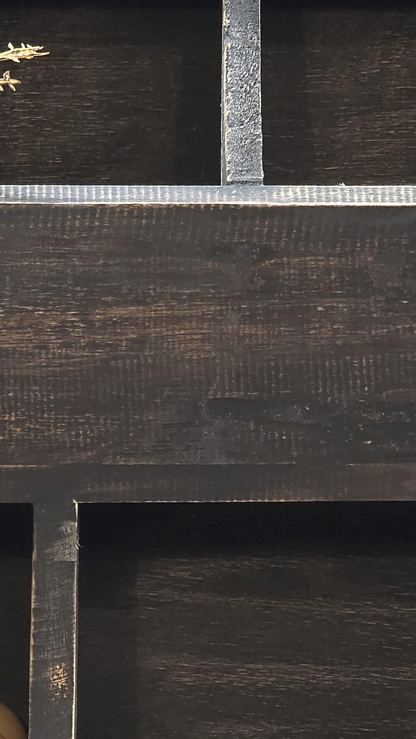 - Kleur: donker / vergrijsd hout