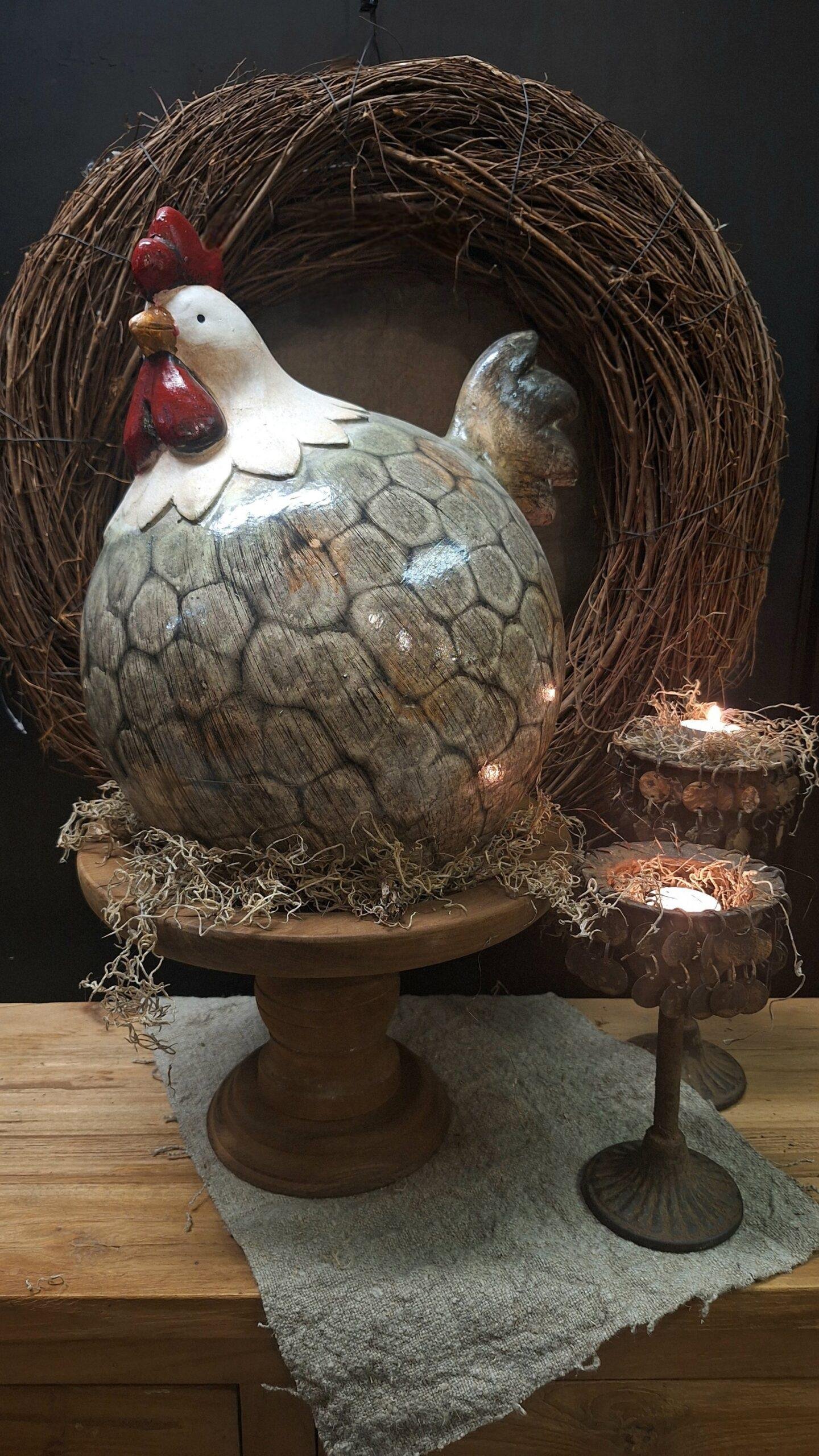 Breng de sfeer van Pasen in huis met deze prachtige Beige haan! Deze decoratieve kip is een echte blikvanger op jouw paastafel en zorgt direct voor een warme, landelijke uitstraling.