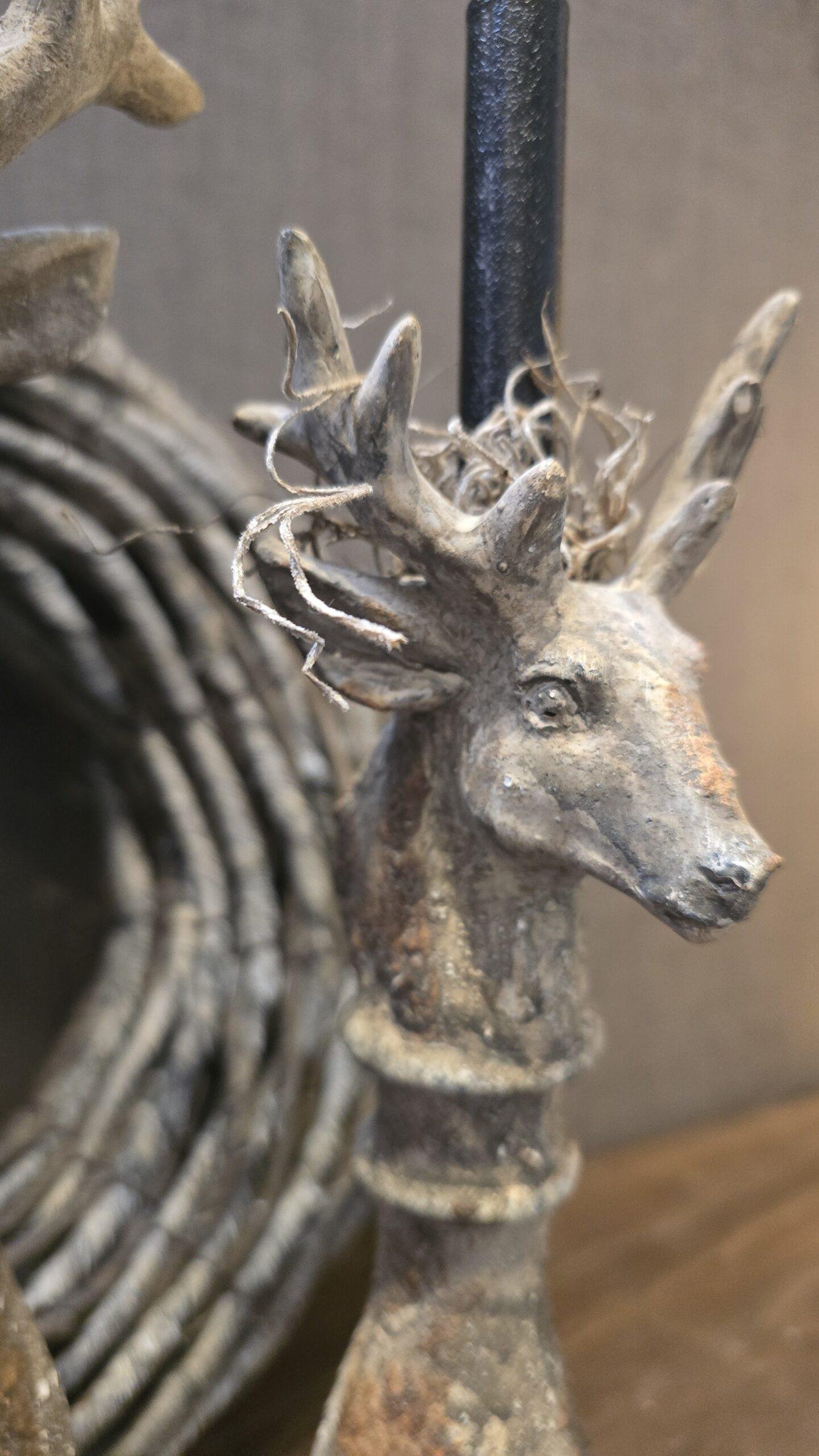 Windlicht op Hertengewei-Voet met Amberglas – Landelijk & Stoer