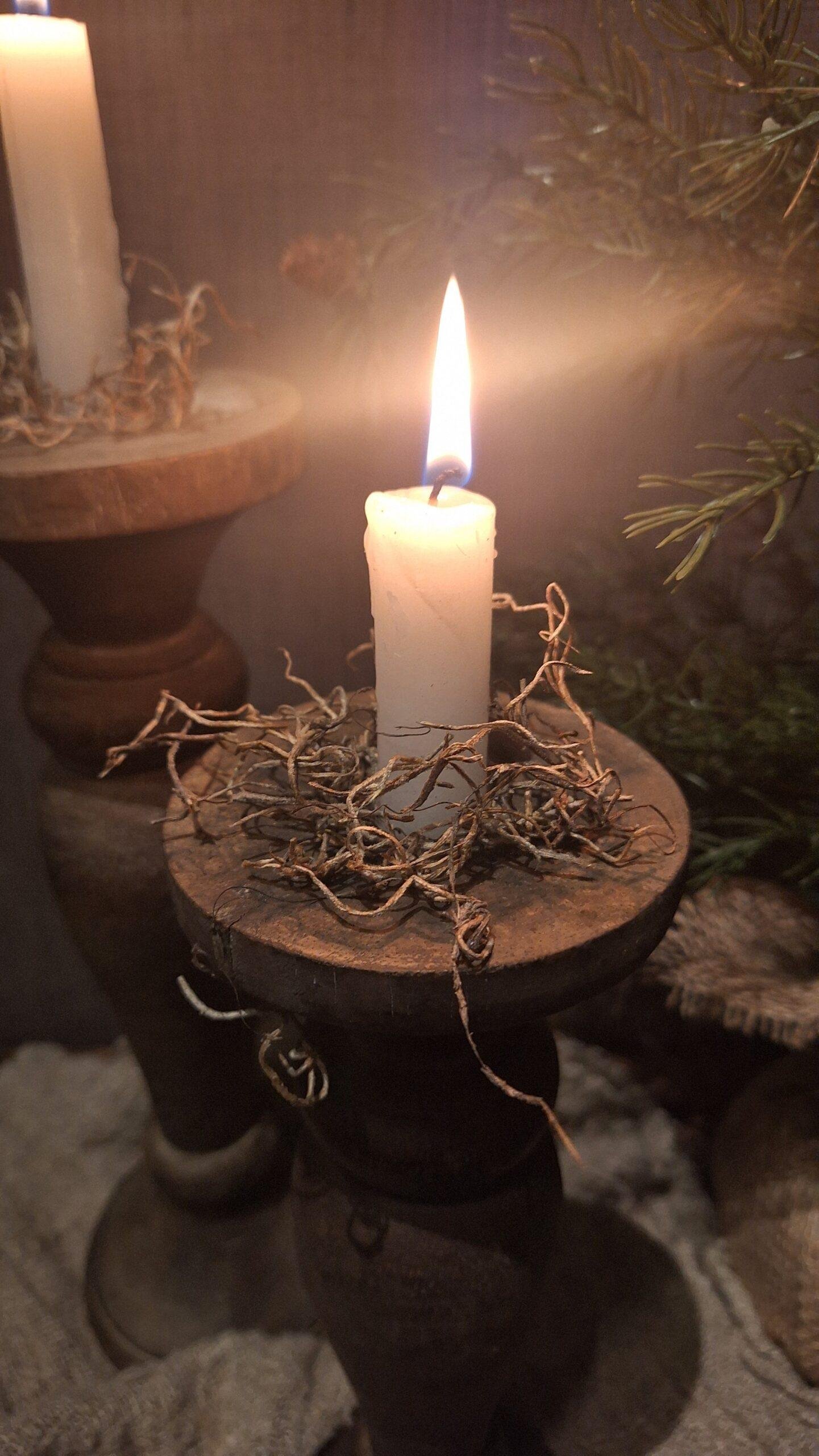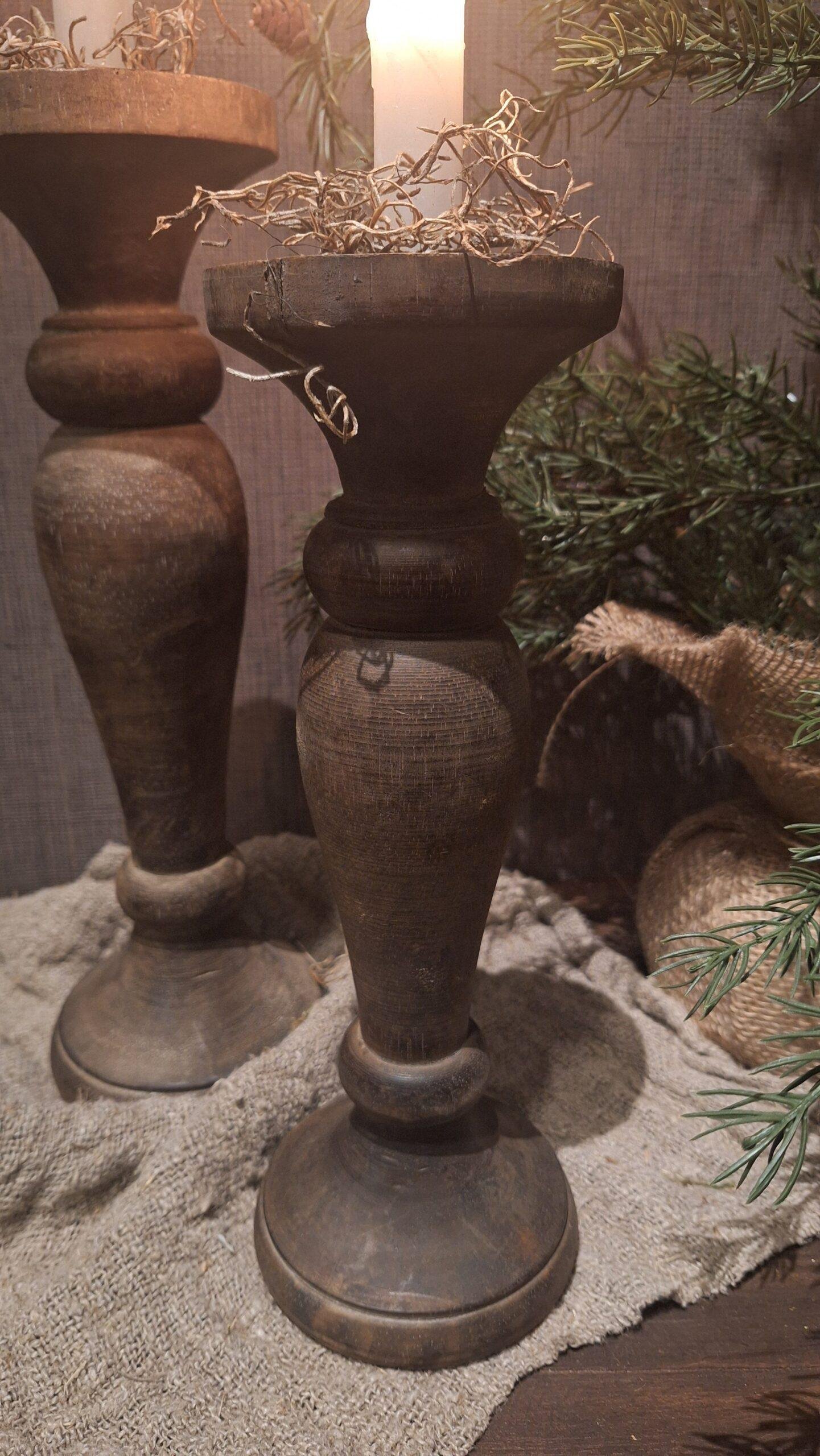 Oude houten wielas kandelaar op statief