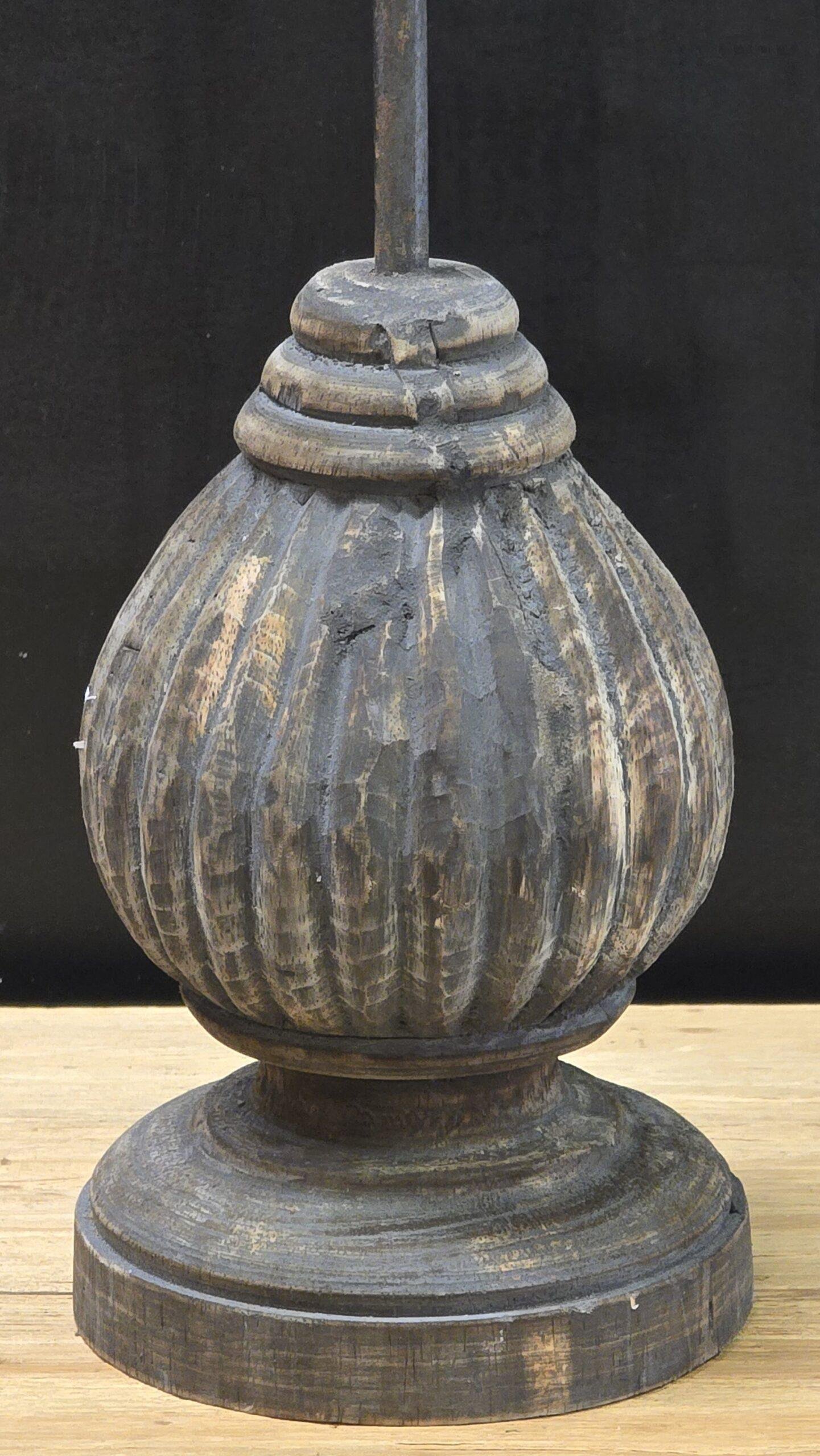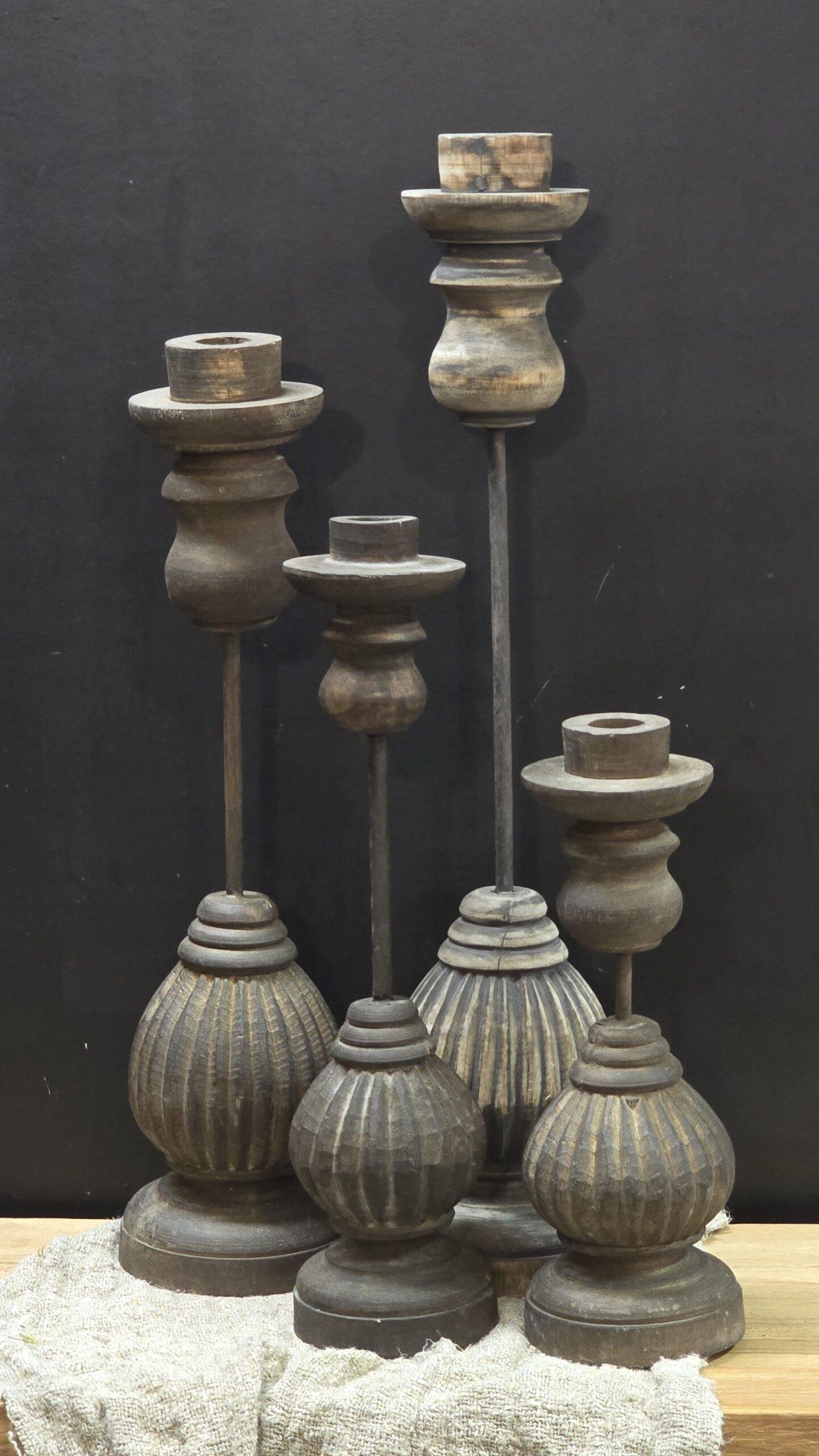 Oude houten wielas kandelaar op statief