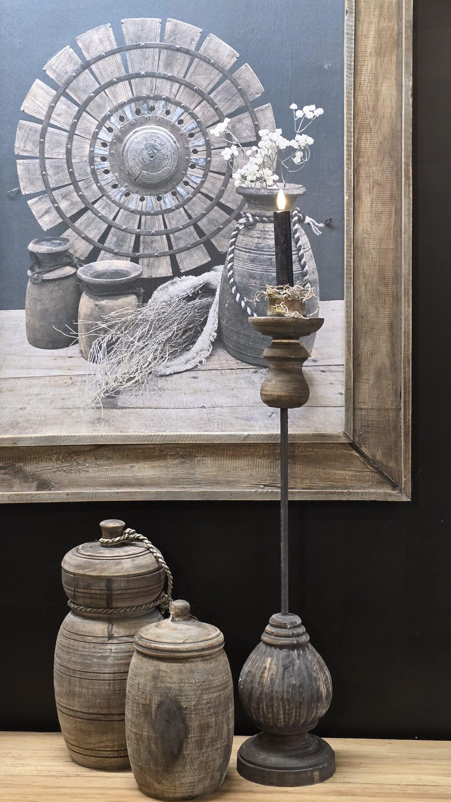 Sfeervolle houten kandelaar landelijke stijl van 40 -50 of 60 cm met landelijke charme. Ideaal voor een stompkaars of LED-kaars.