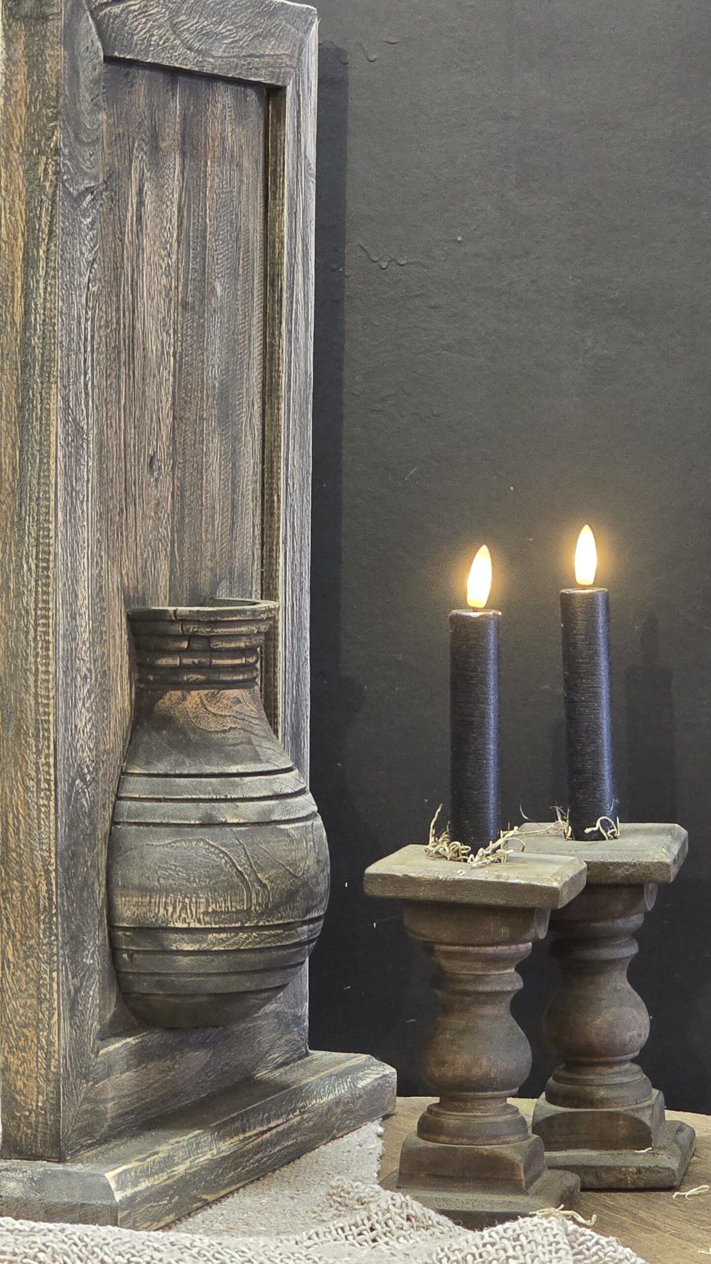 Deze houten wanddecoratie met kruik in staand model is een sfeervol en karaktervol item voor een landelijk interieur. De combinatie van het robuuste houten frame en de subtiele pot geeft een rustige en warme uitstraling.