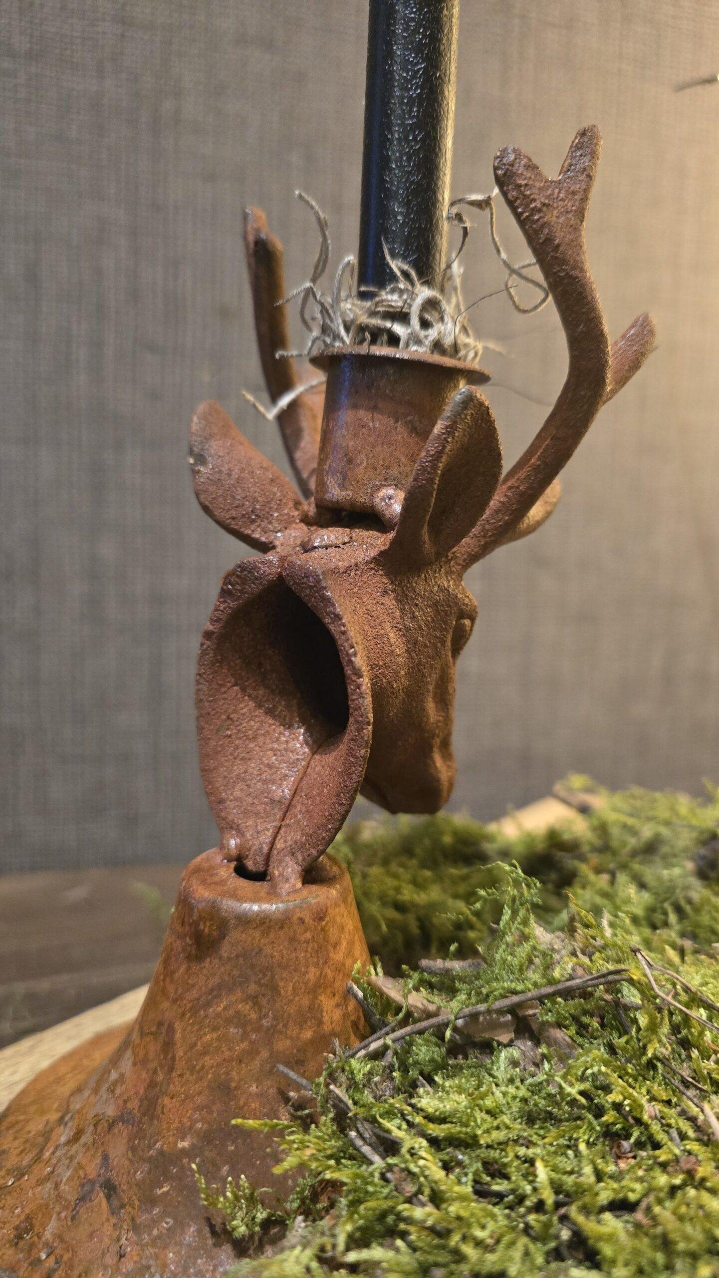 Windlicht op Hertengewei-Voet met Amberglas – Landelijk & Stoer