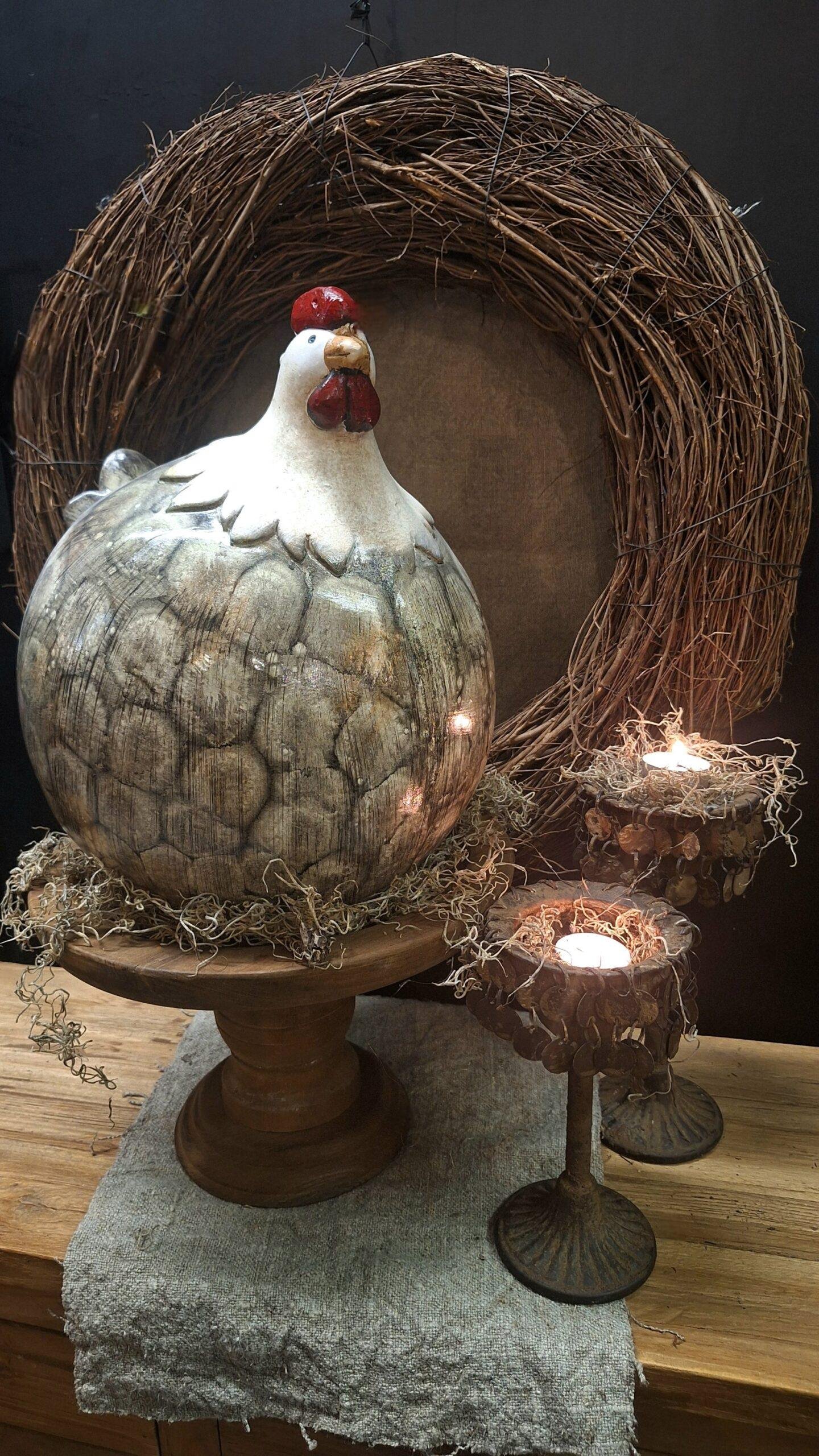 Breng de sfeer van Pasen in huis met deze prachtige beige kip! Deze decoratieve kip is een echte blikvanger op jouw paastafel en zorgt direct voor een warme, landelijke uitstraling.