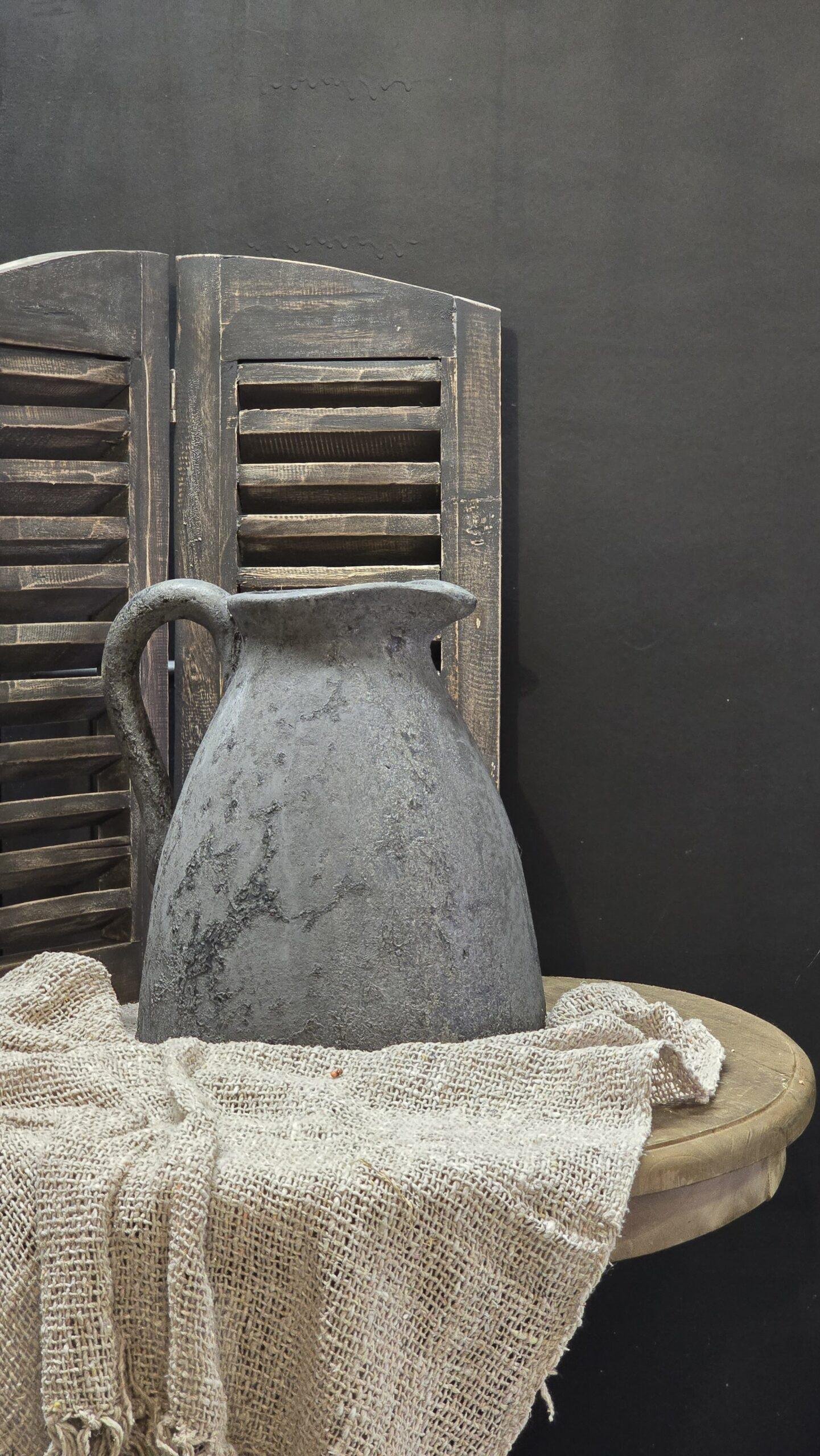 Landelijke kruik met oor grijs – stoere waterkruik pot