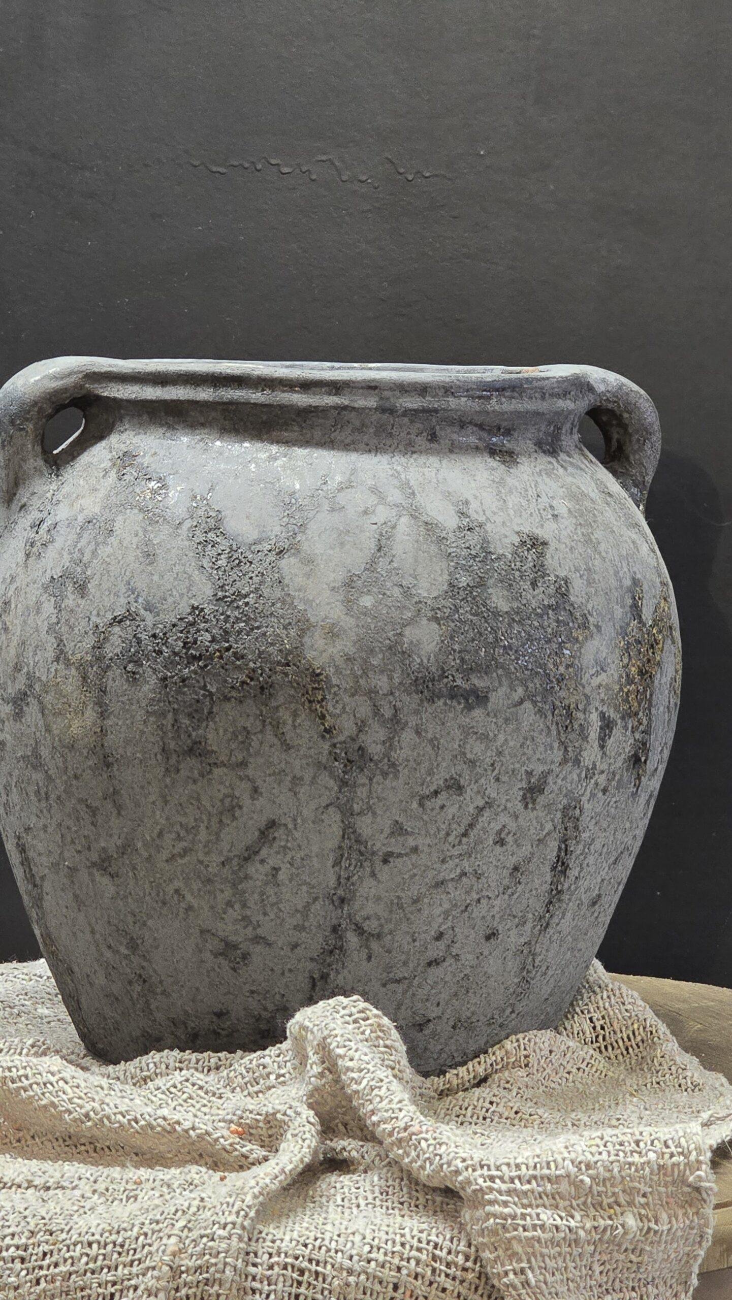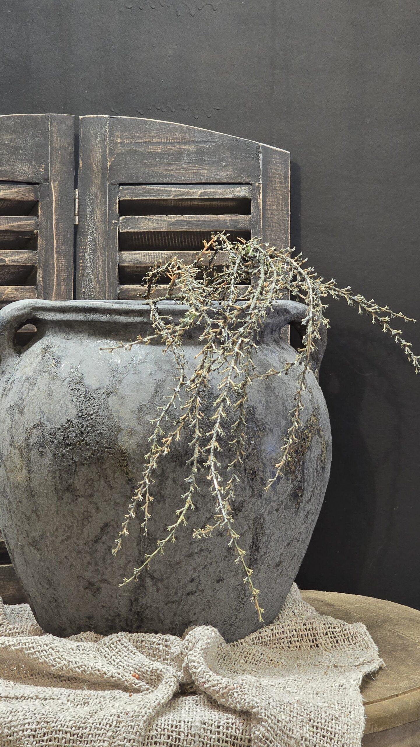 Landelijke kruik met oren grijs – stoere pot met handgrepen