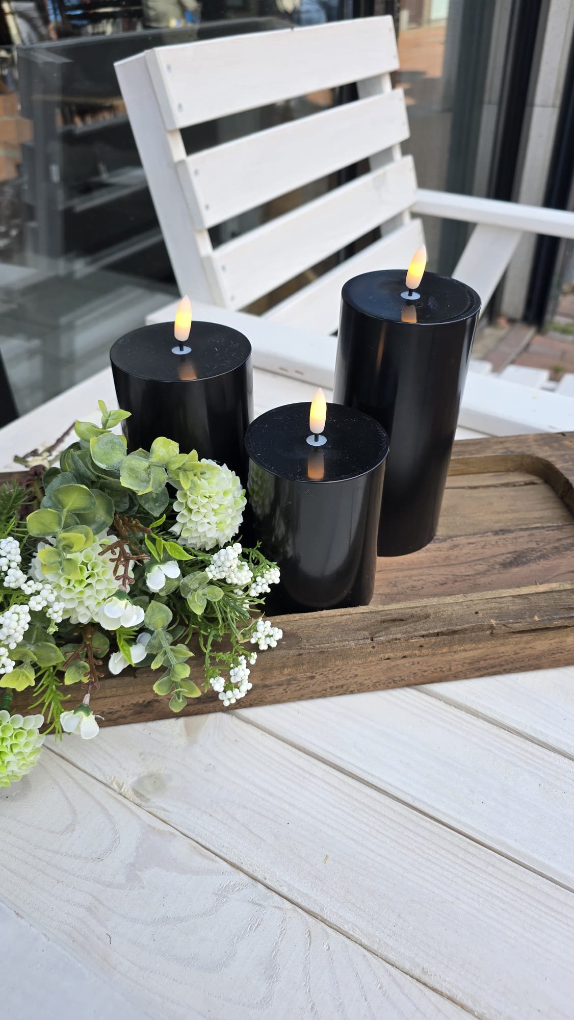 Set van 3 LED Buitenkaarsen – Taupe of Zwart – Weerbestendig met Timer en 3D Vlam Effect