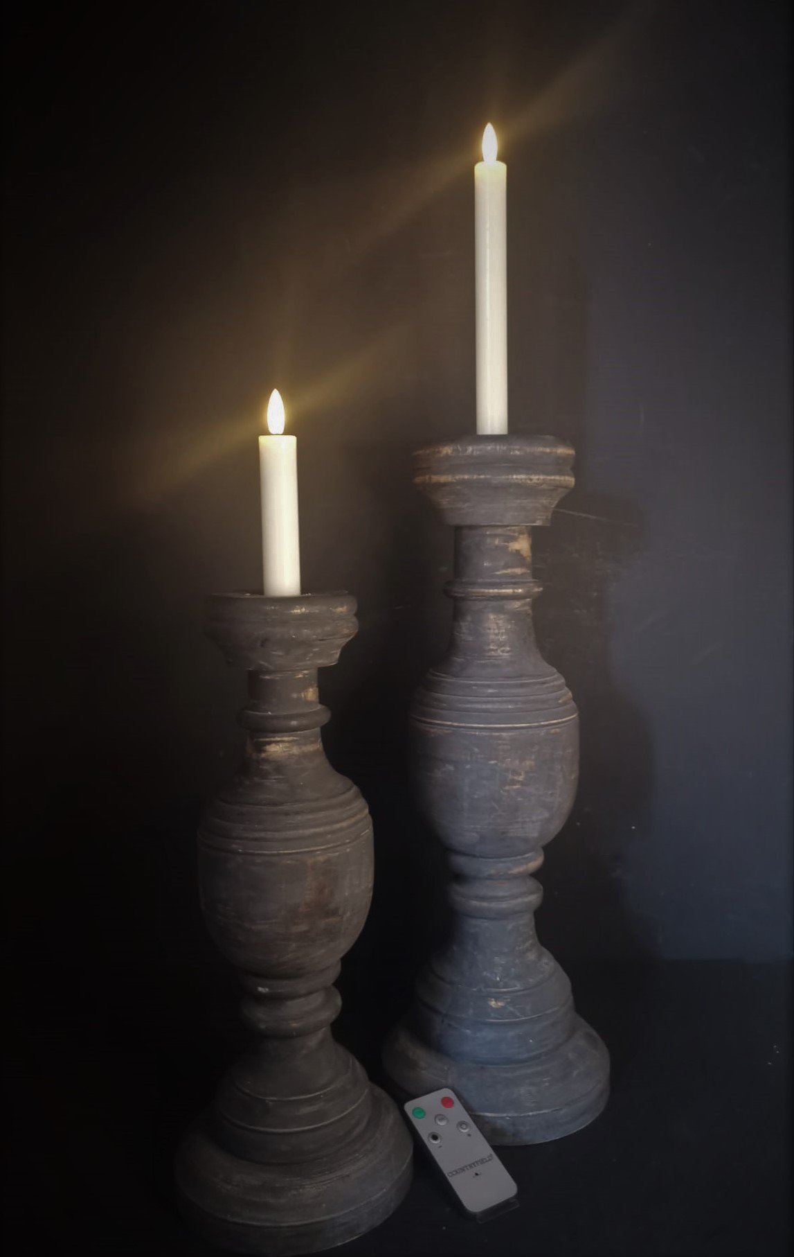 Old Grey LED Kaars met Vlameffect