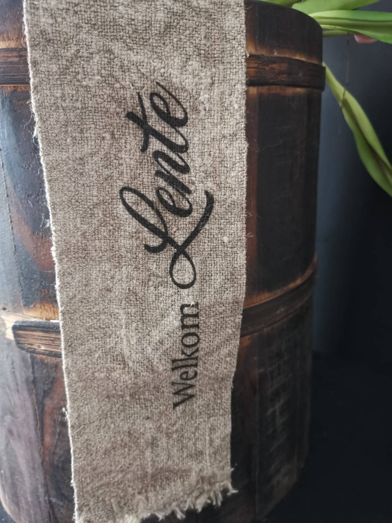 In de landelijke woonstijl vind je een product dat een vleugje warmte en karakter toevoegt aan je interieur: een sfeervolle Linnen lint welkom lente. Dit decoratieve lint, met zijn subtiele combinatie van natuurlijke en tijdloos design, is een perfecte aanvulling op elke rustieke inrichting.