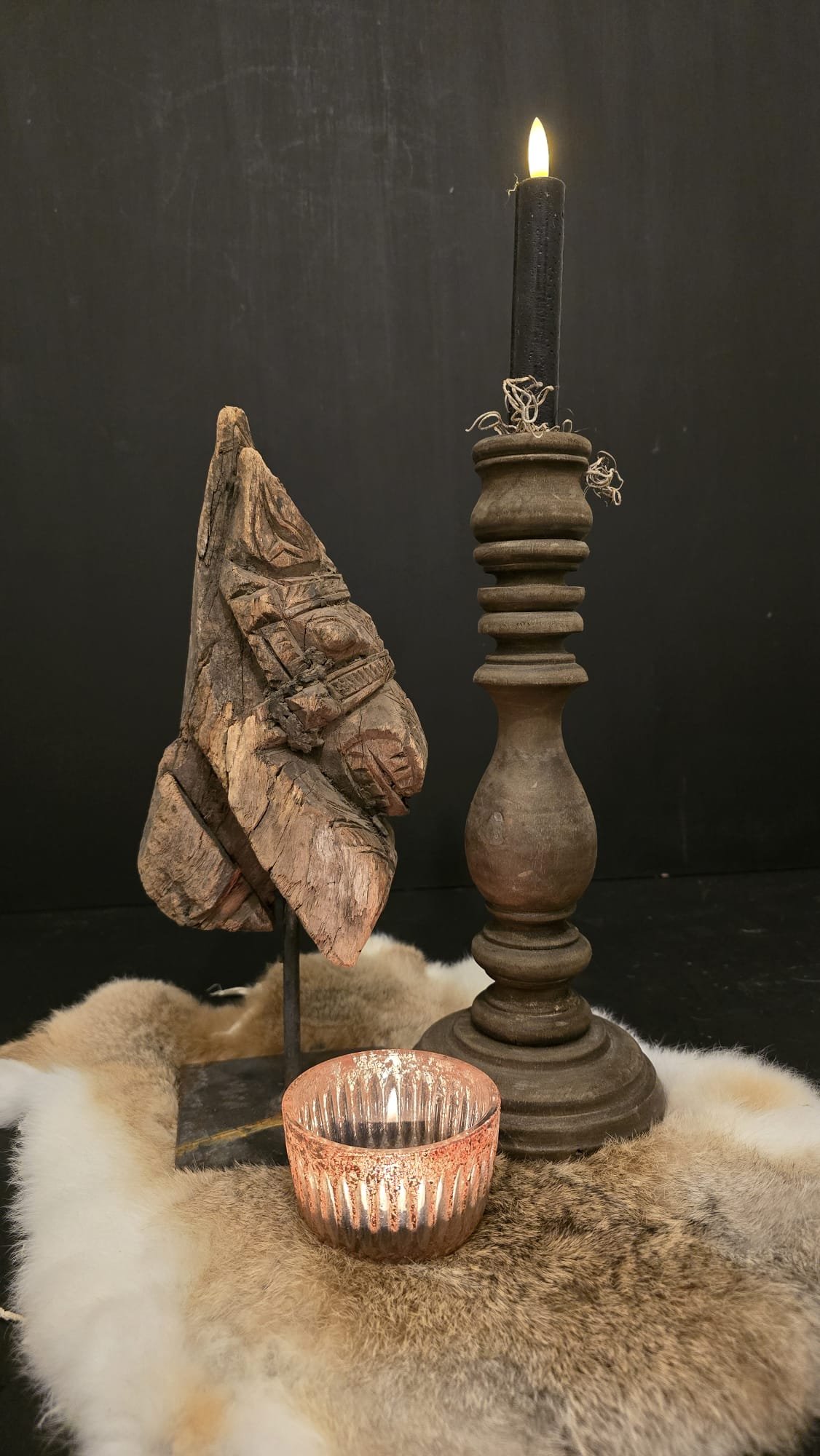 Windlicht op Hertengewei-Voet met Amberglas – Landelijk & Stoer