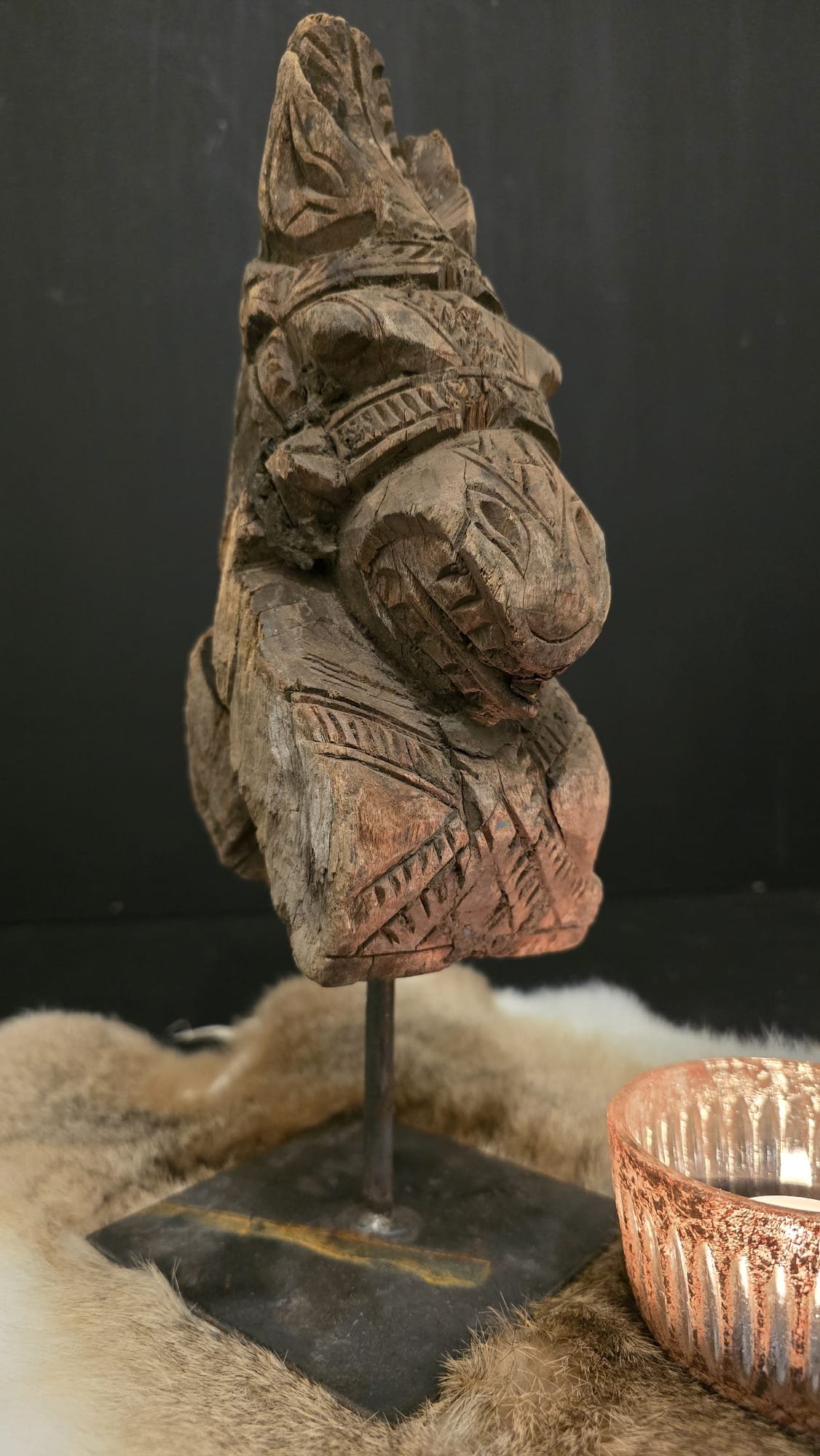 Houten Marawi Paard op Standaard – Tijdloze Elegantie voor Elk Interieur