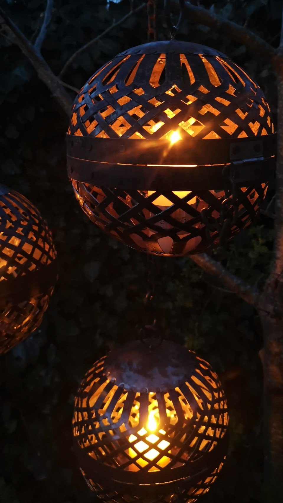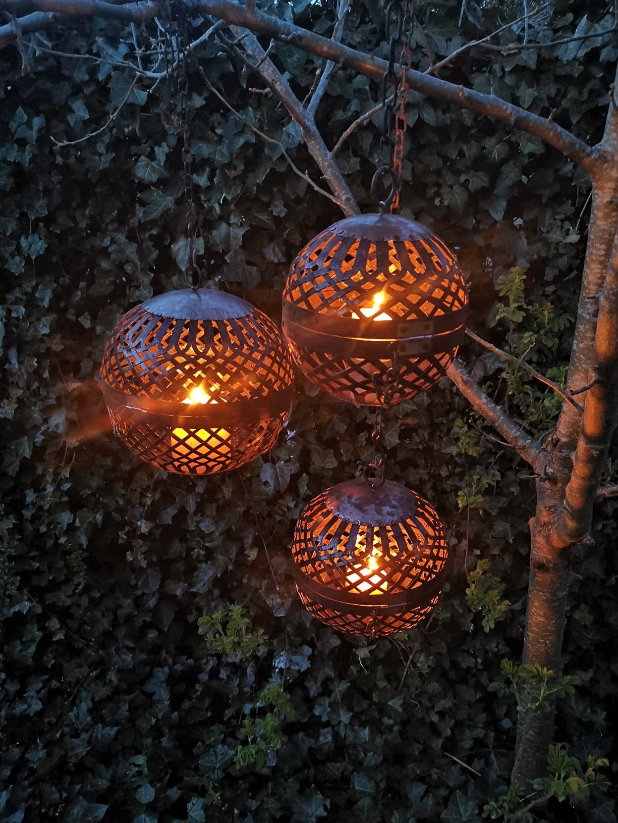 Je zet het op de (tuin)tafel, vensterbank of op de kast. Je kunt de ballen ook in de boom hangen met een kaars of led snoer.