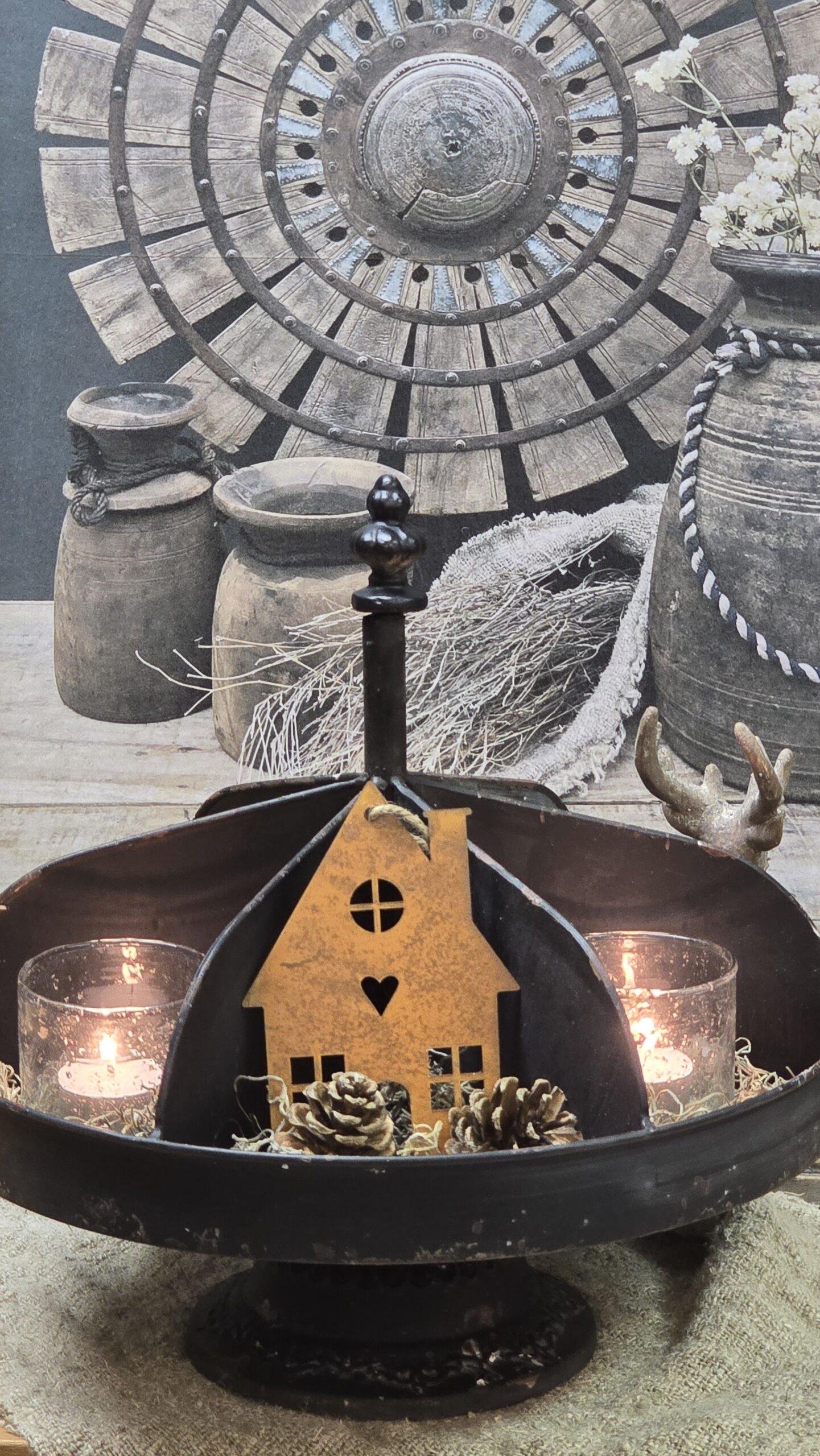 Decoratieve glasplaat met houten voet – landelijke woondecoratie