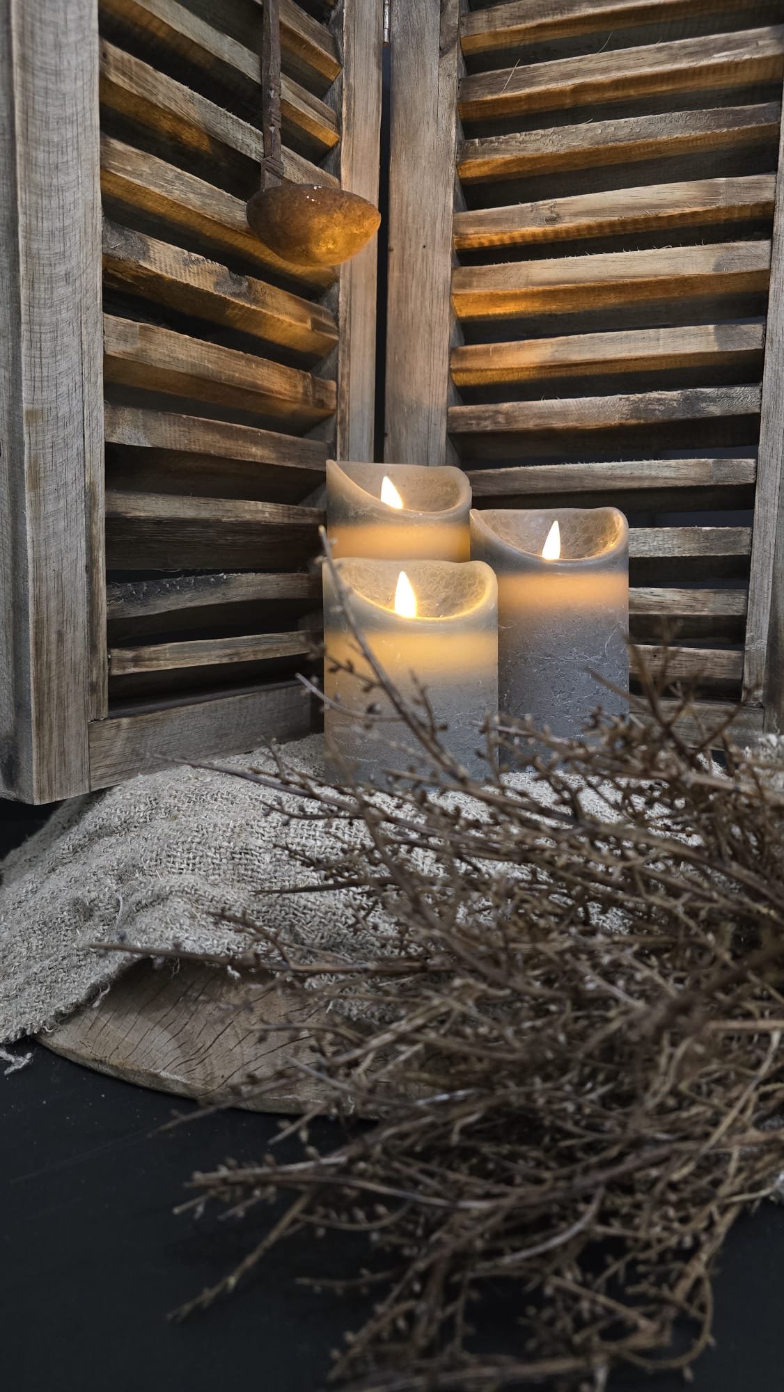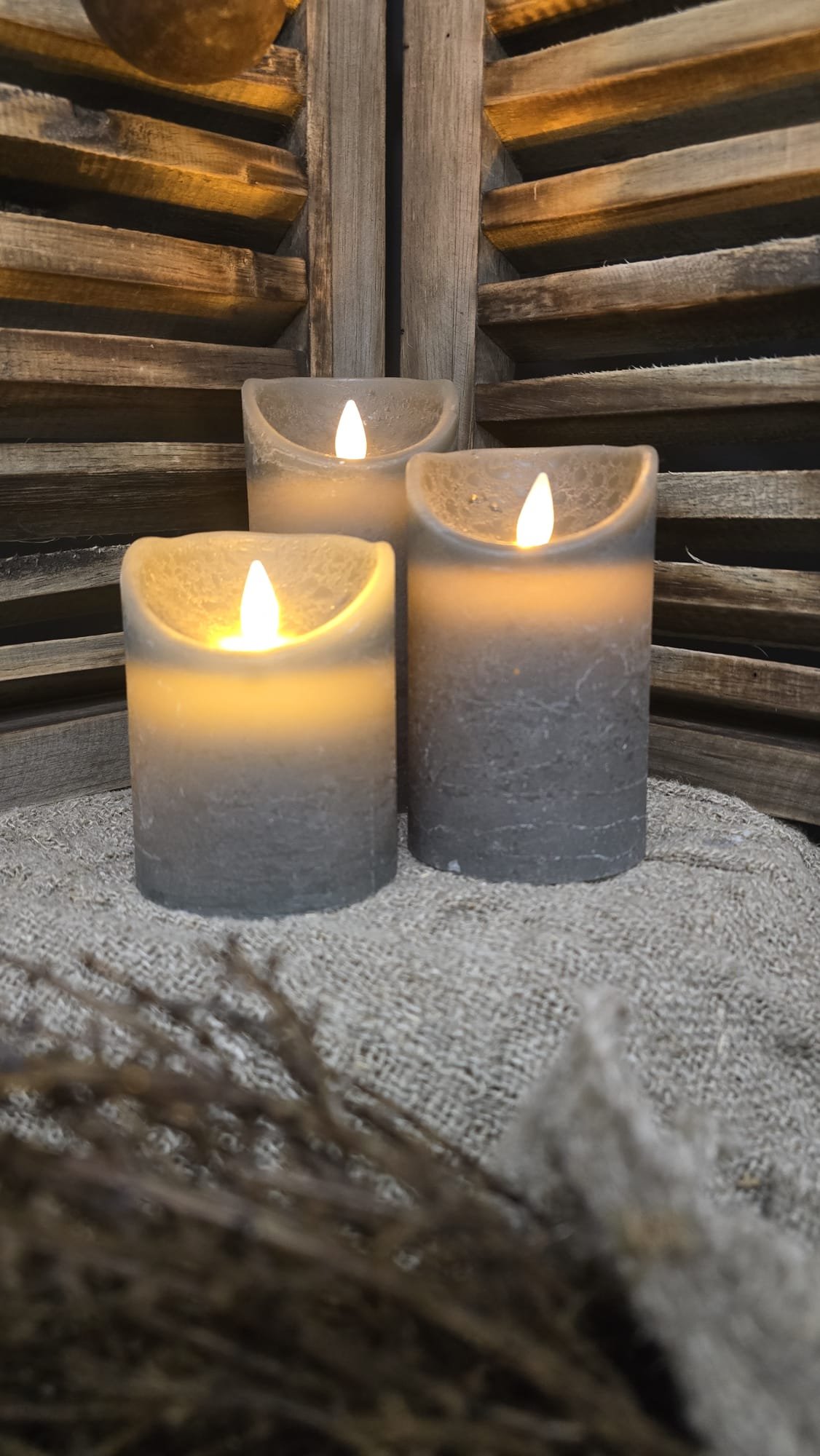 Old Grey LED Kaars met Vlameffect – Veilig & Sfeervol