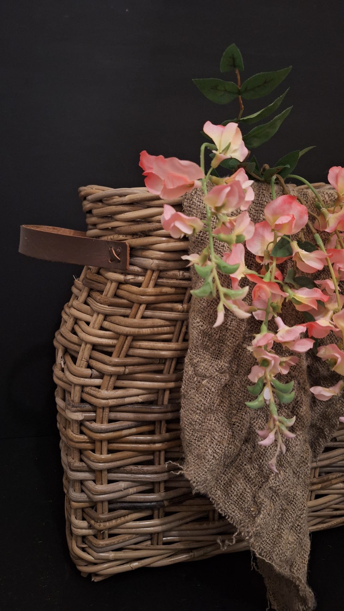 - Duurzaam materiaal: stevig rattan met een elegant lederen handvat.