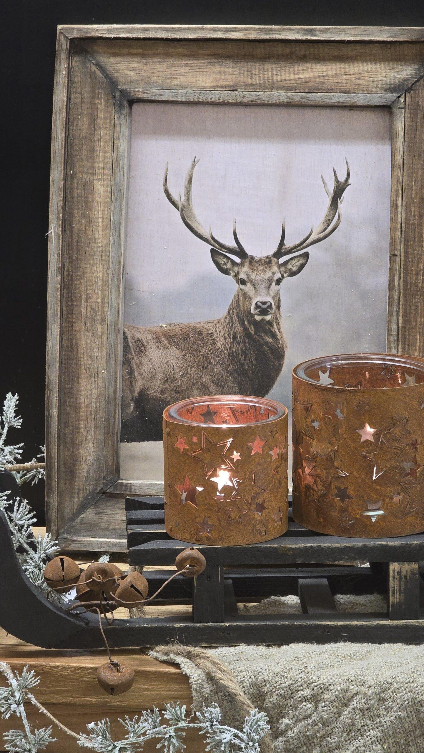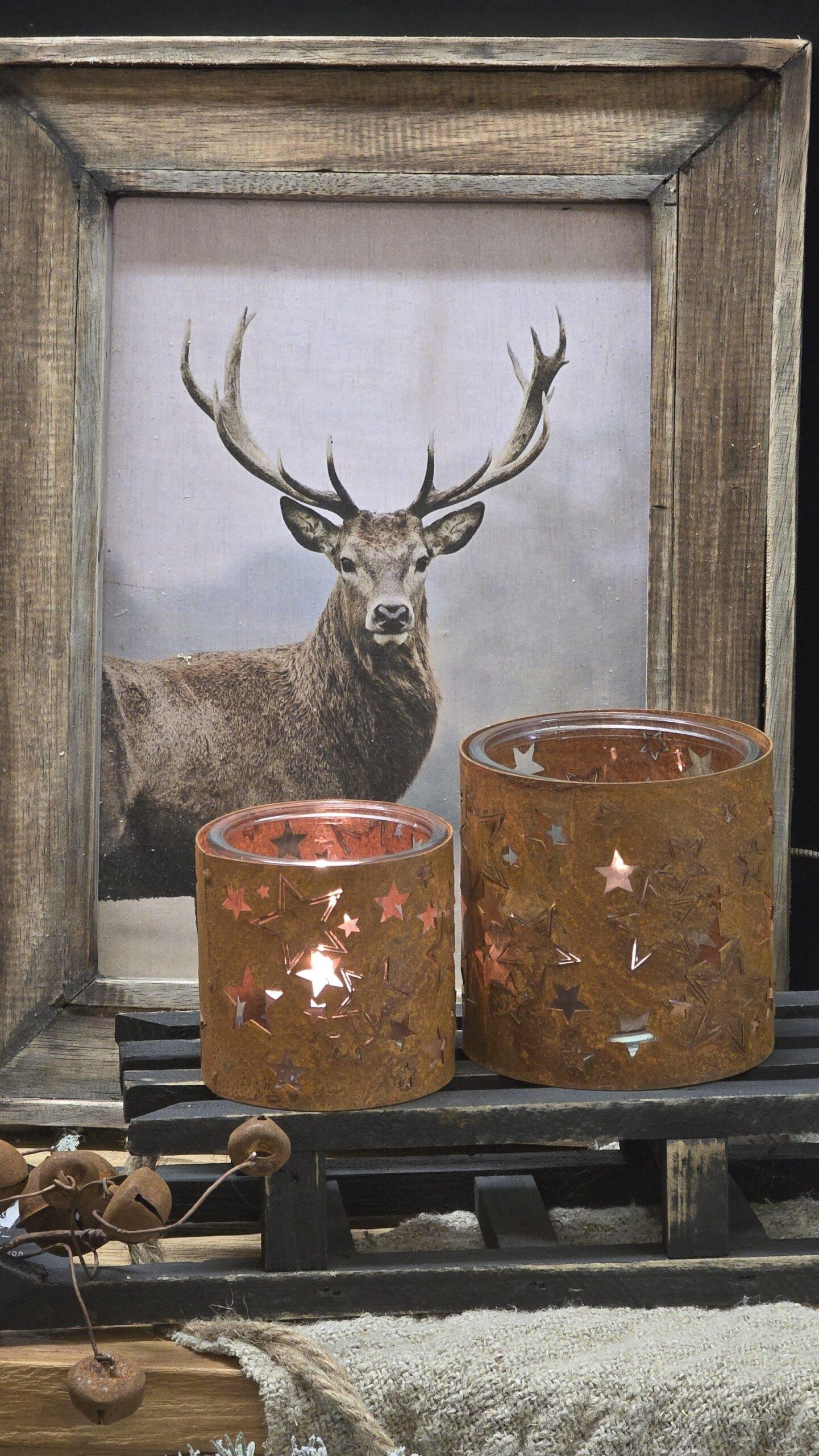 Roest sterren windlicht met glas