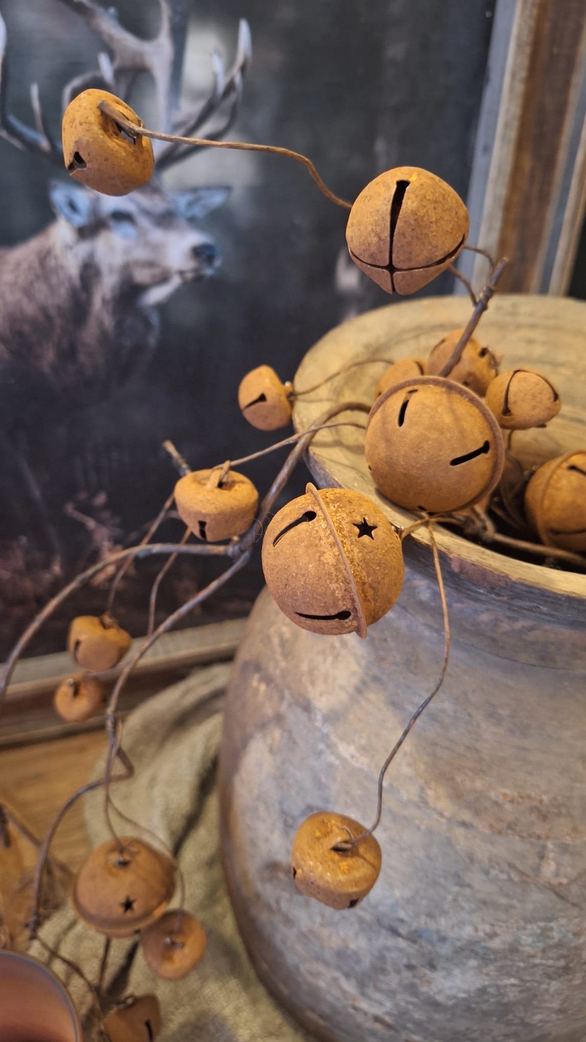 Breng sfeer en karakter in huis met deze landelijke tak van 60 cm, voorzien van roestige belletjes. De bellen prachtig afgewerkt met een authentieke roestlaag en decoratieve uitsnedes. Deze tak past perfect binnen een sober, landelijk interieur en is een tijdloos decoratiestuk.