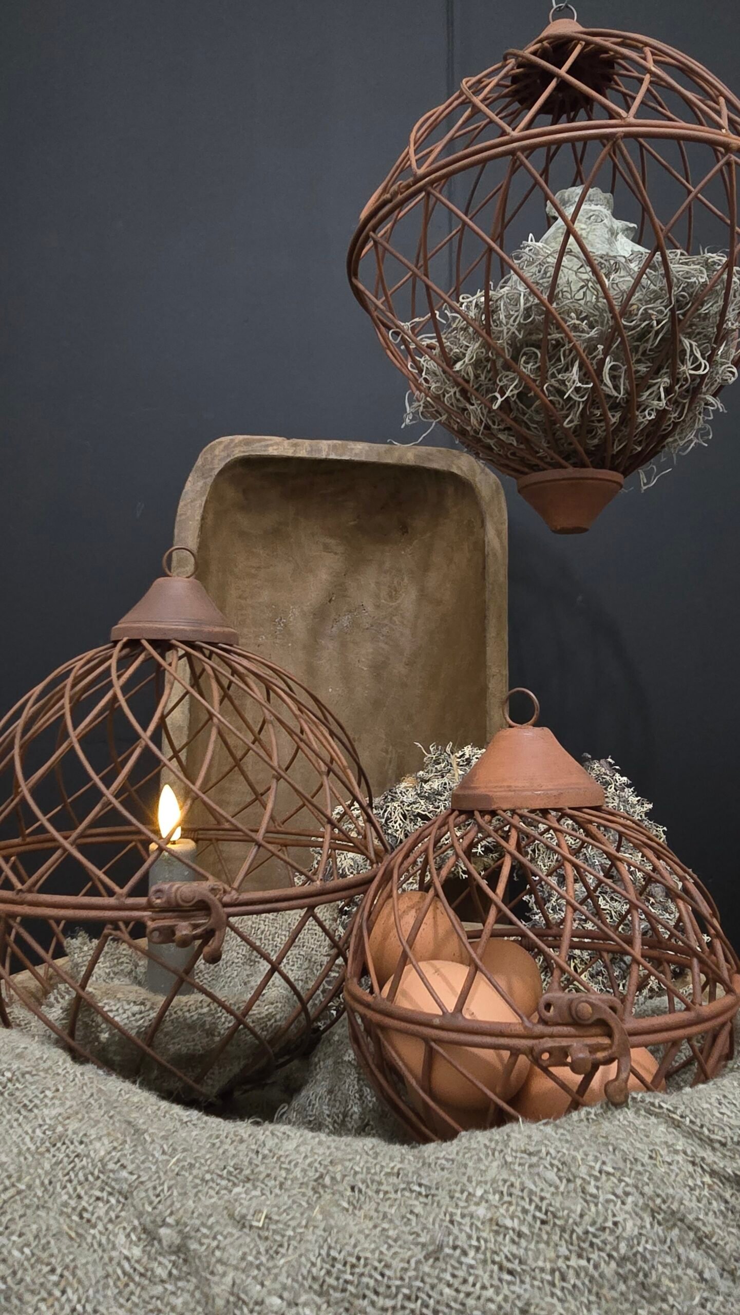 De roestige bal is veelzijdig en eenvoudig te plaatsen. Hang hem aan een boom voor een speels en sierlijk effect, plaats hem tussen planten voor een verrassend contrast, of zet hem op een terras of balkon voor een stoere, decoratieve touch. Combineer meerdere roestige elementen voor een harmonieus geheel en een extra stijlvolle uitstraling.