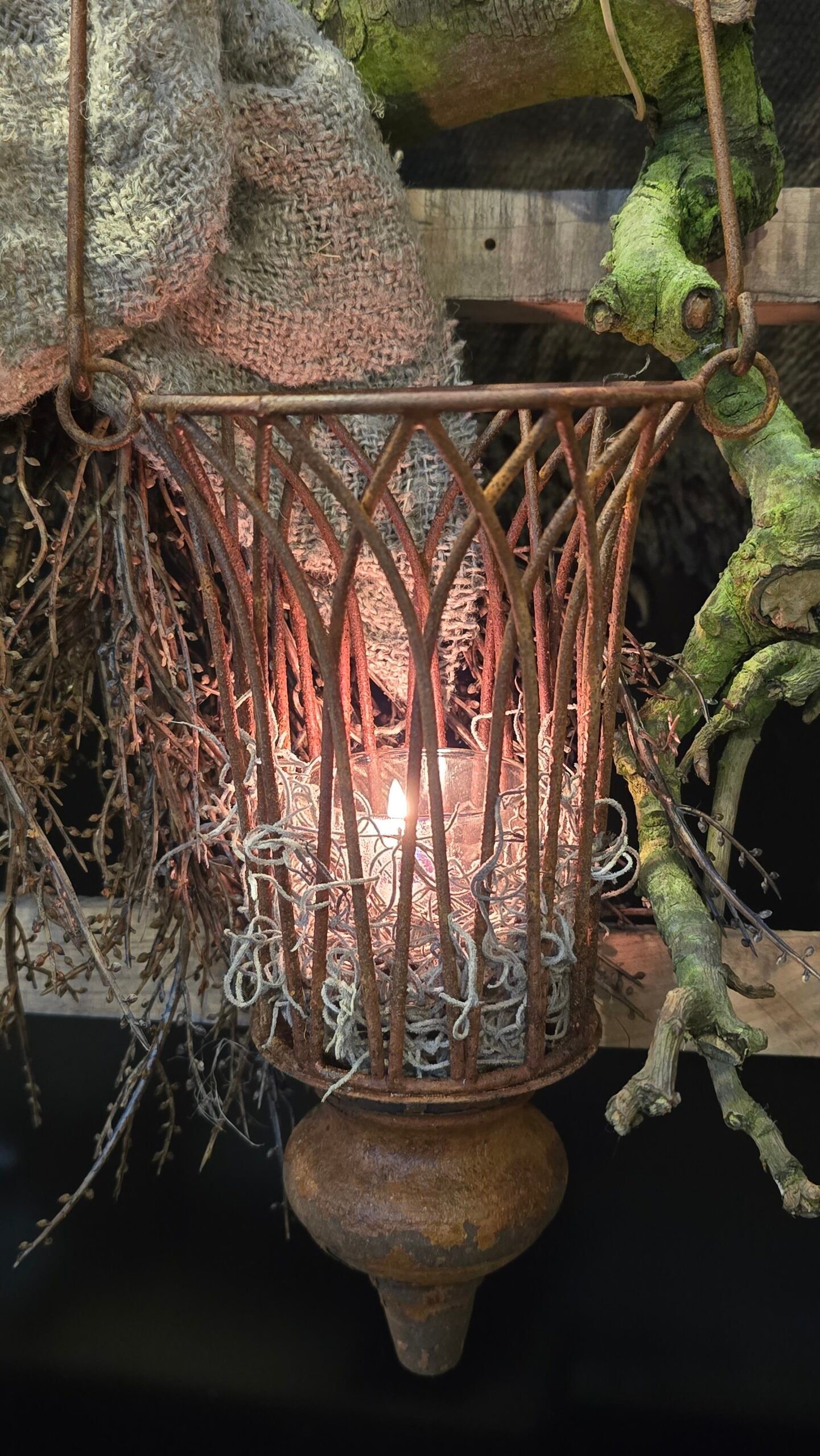 Roestige theelicht hanger