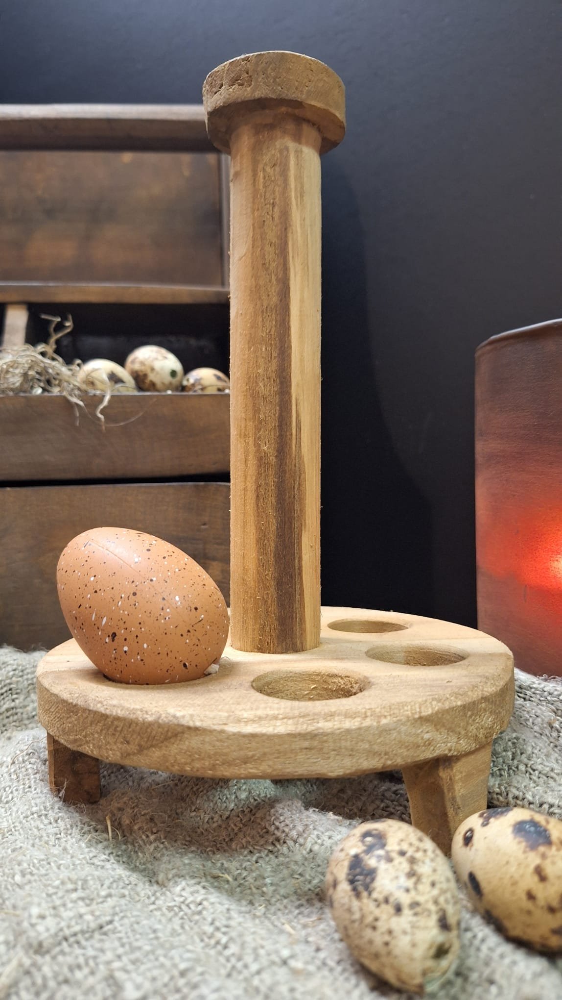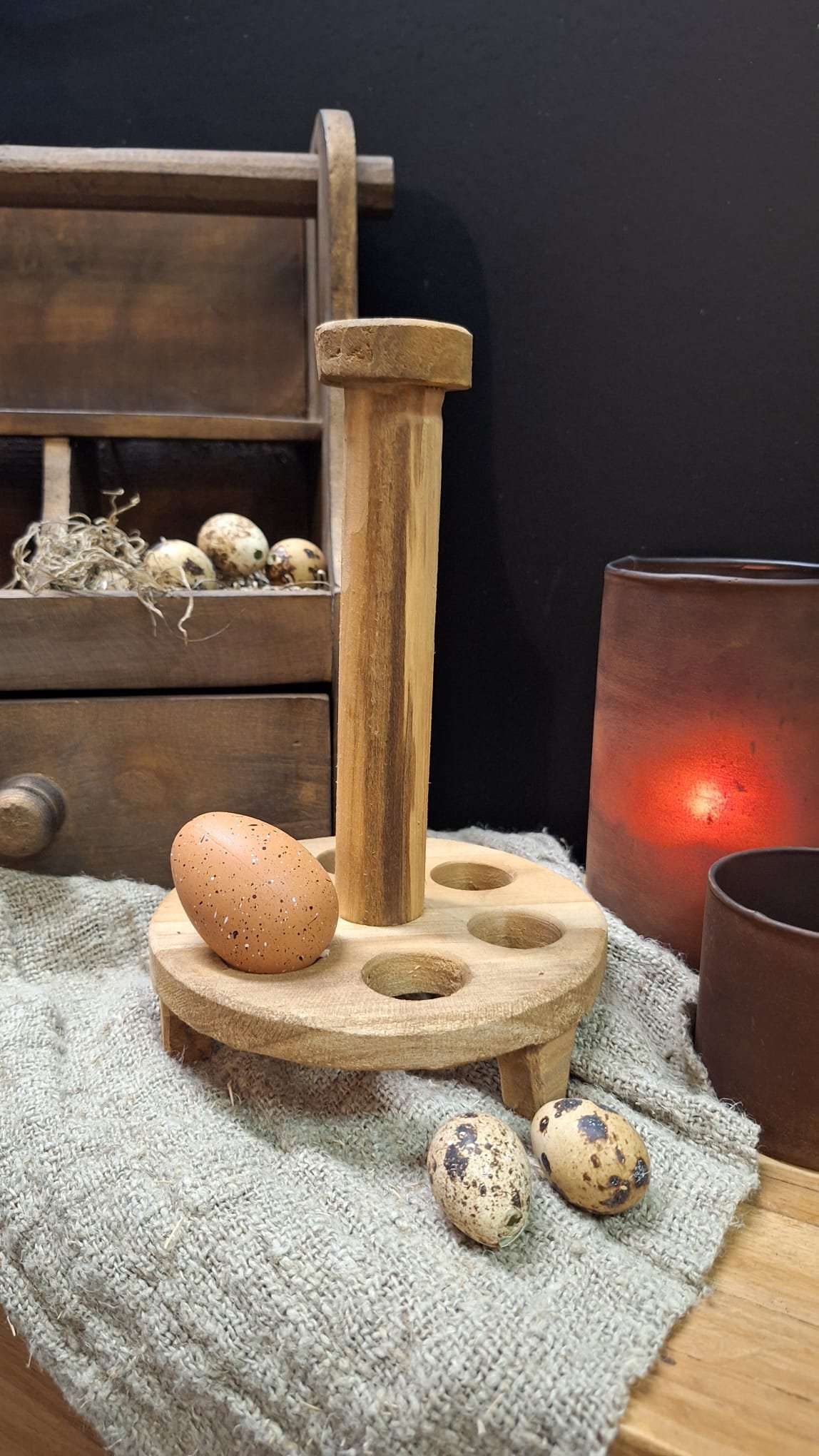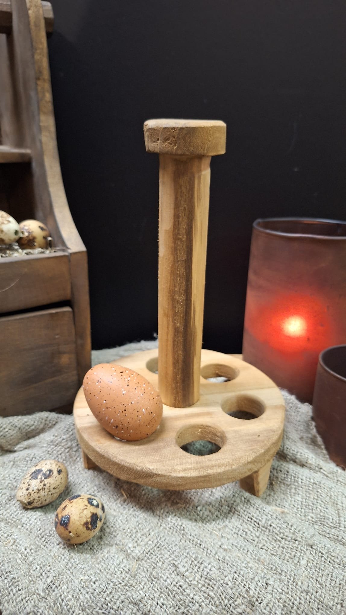 Rond houten eierrek voor 6 eieren – Landelijke keuken decoratie