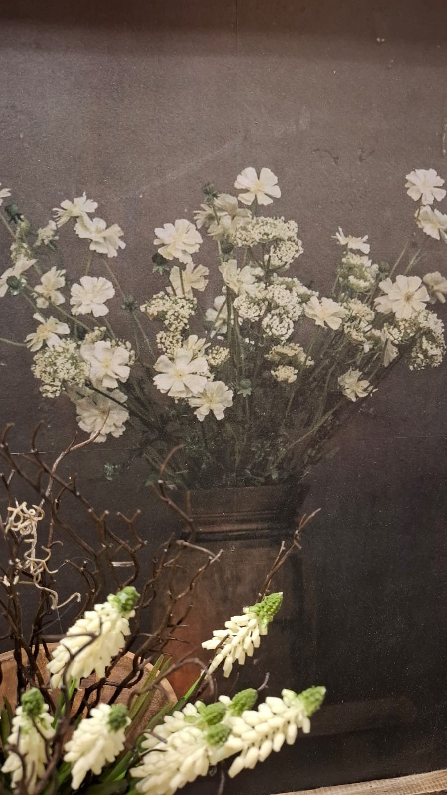 Breng rust en natuurlijke charme in je interieur met dit prachtige Schilderij Bloemen en houten lepel met houten frame XL. Dit kunstwerk straalt elegantie uit en voegt een vleugje landelijke sfeer toe aan elke ruimte. De zachte, neutrale tinten van de Bloemen contrasteren prachtig met de warme uitstraling van het houten frame, waardoor dit schilderij perfect past in zowel moderne als klassieke interieurs.