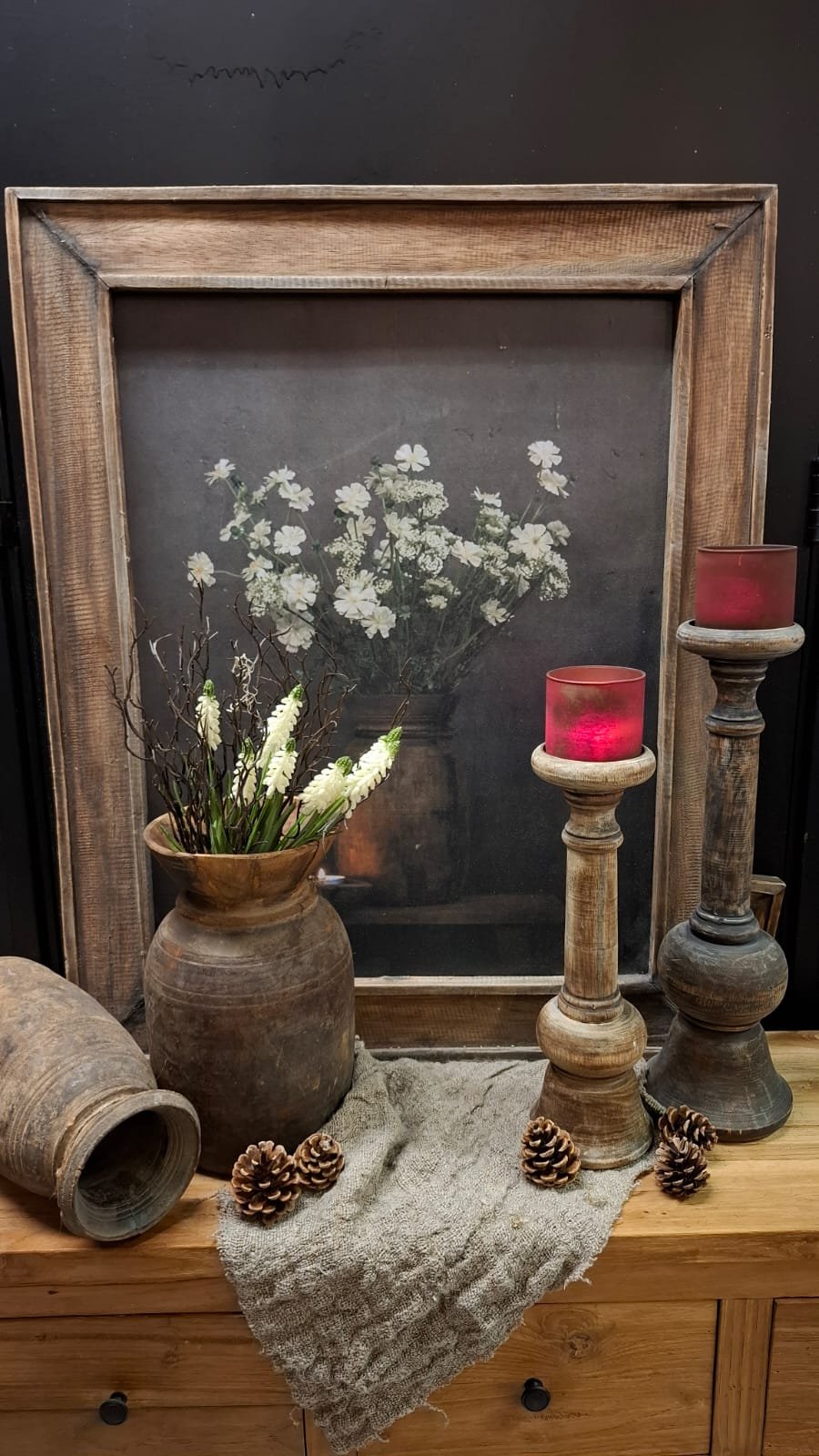 Breng rust en natuurlijke charme in je interieur met dit prachtige Schilderij Bloemen en houten lepel met houten frame XL. Dit kunstwerk straalt elegantie uit en voegt een vleugje landelijke sfeer toe aan elke ruimte.