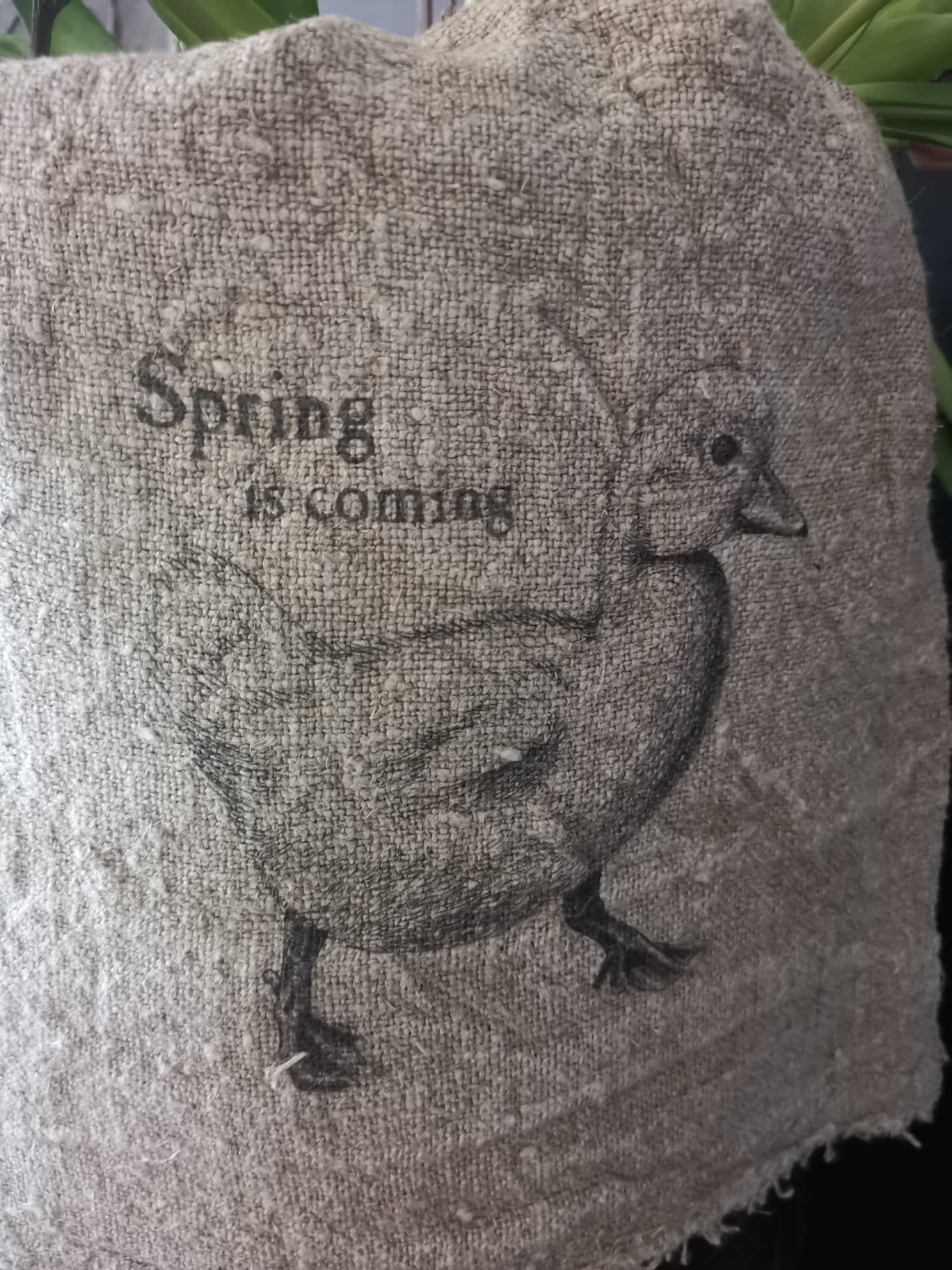 Het gebruik van linnen geeft het Shabby doekje lente eend een natuurlijke uitstraling, waardoor het een rustieke charme krijgt die perfect past bij de landelijke woonstijl.
