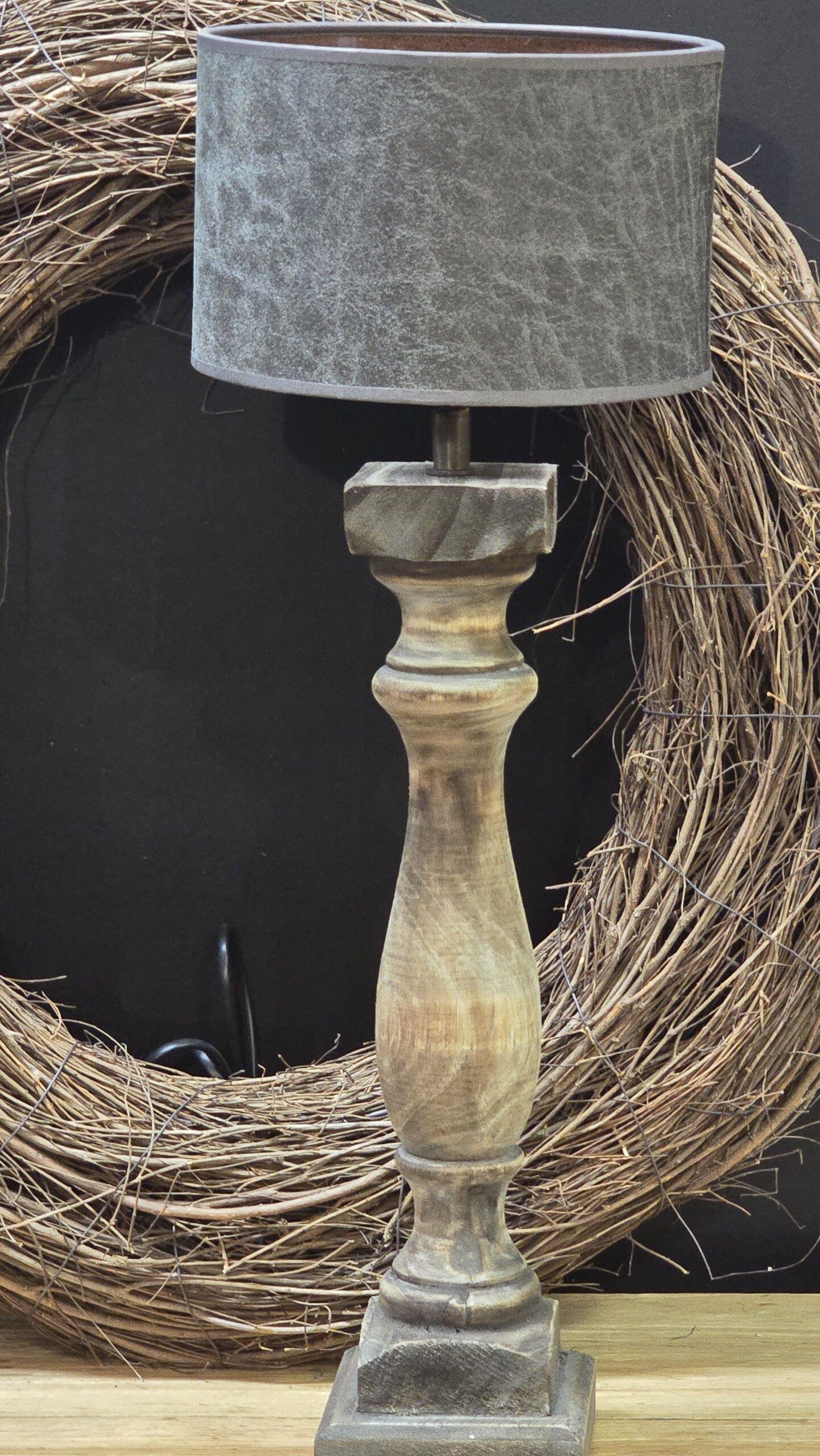 Grijze pinakel tafellamp – landelijke lampenvoet