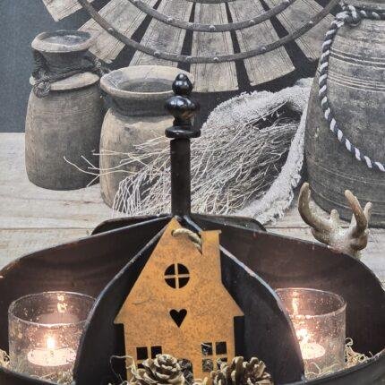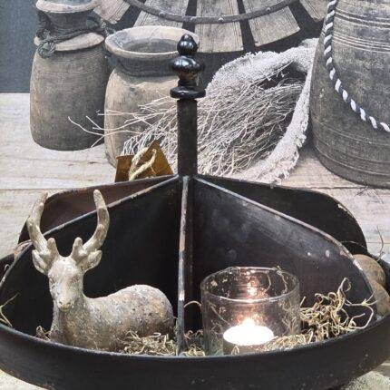 Decoratieve glasplaat met houten voet – landelijke woondecoratie