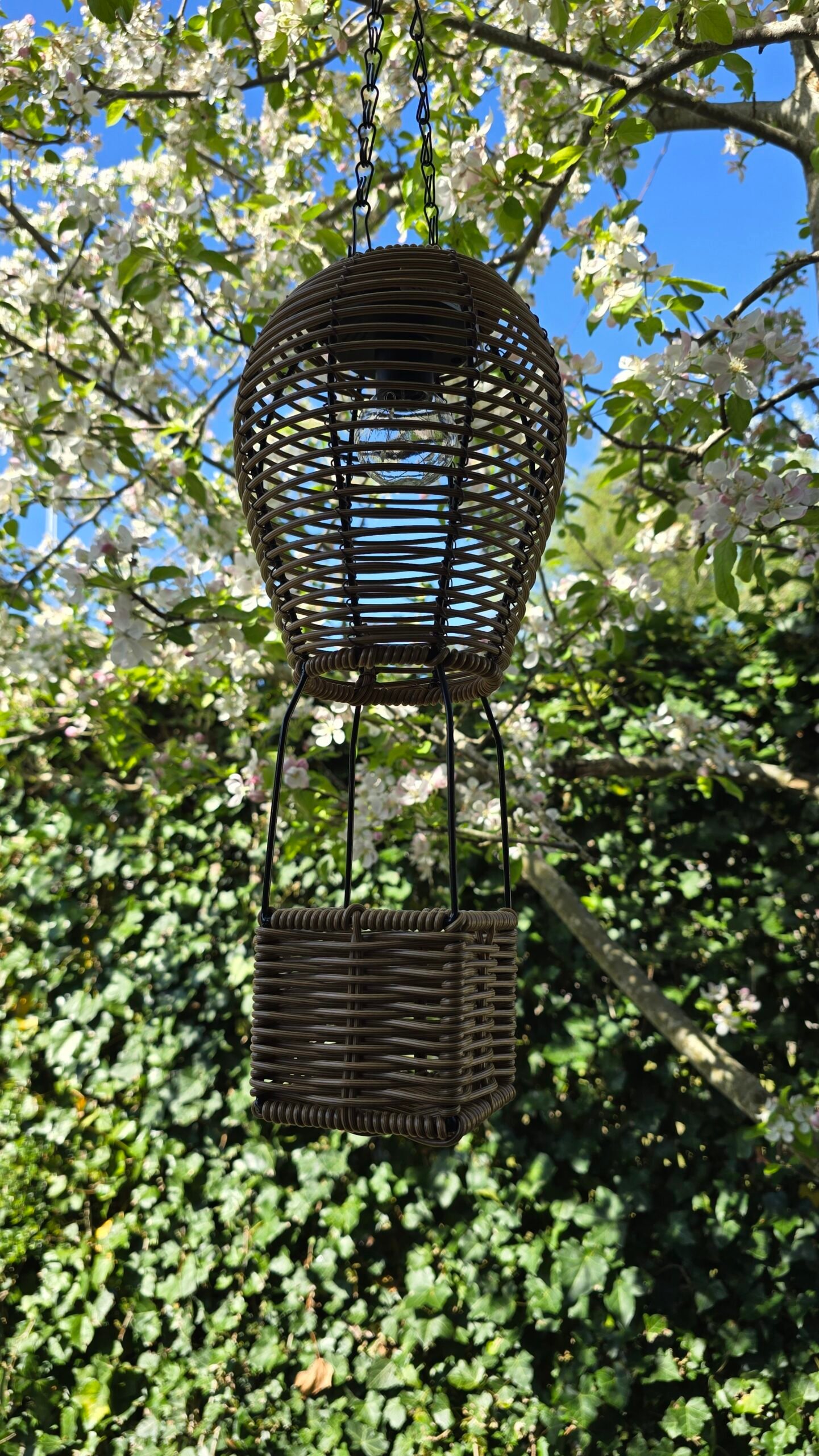 De solar hanglamp rattan in luchtballon vorm is een echte blikvanger voor je tuin of veranda. Het speelse ontwerp met het mandje onderaan maakt deze lamp net even anders dan standaard verlichting.