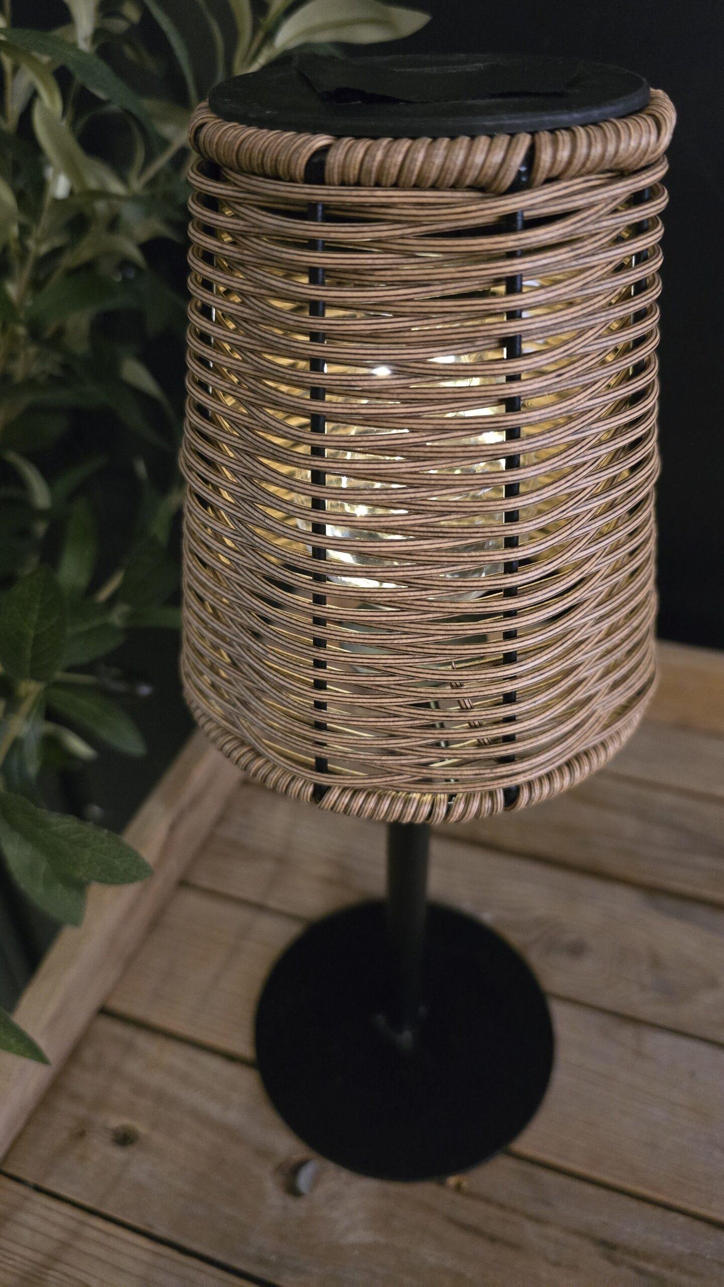 De solar tafellamp rattan is een praktische en sfeervolle lamp met een natuurlijke uitstraling. Het kunststof rattan geeft de look van echt rotan, maar is sterker en beter bestand tegen gebruik buiten.