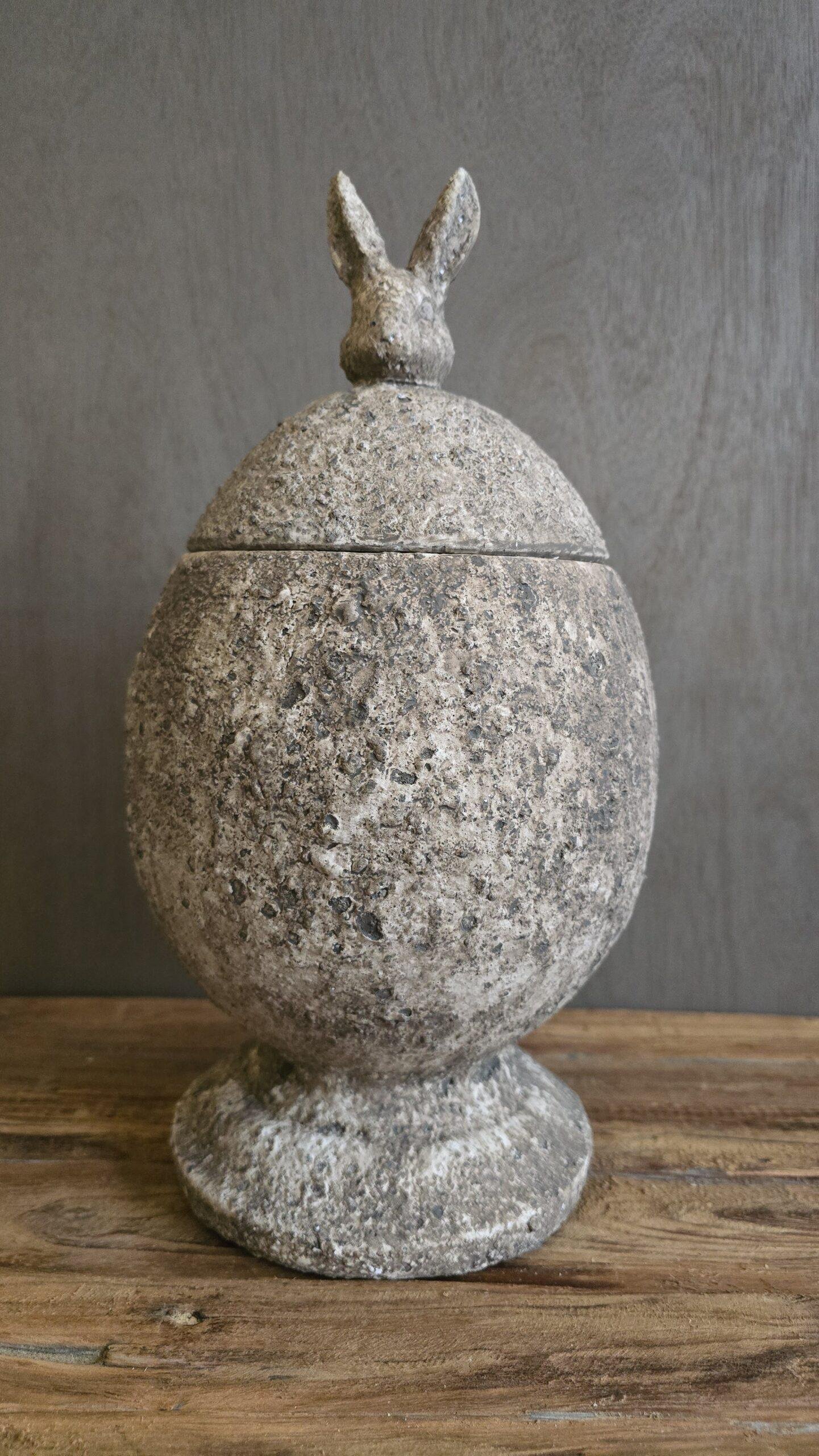 Stenen pot met deksel konijn L – landelijk sobere decoratiepot