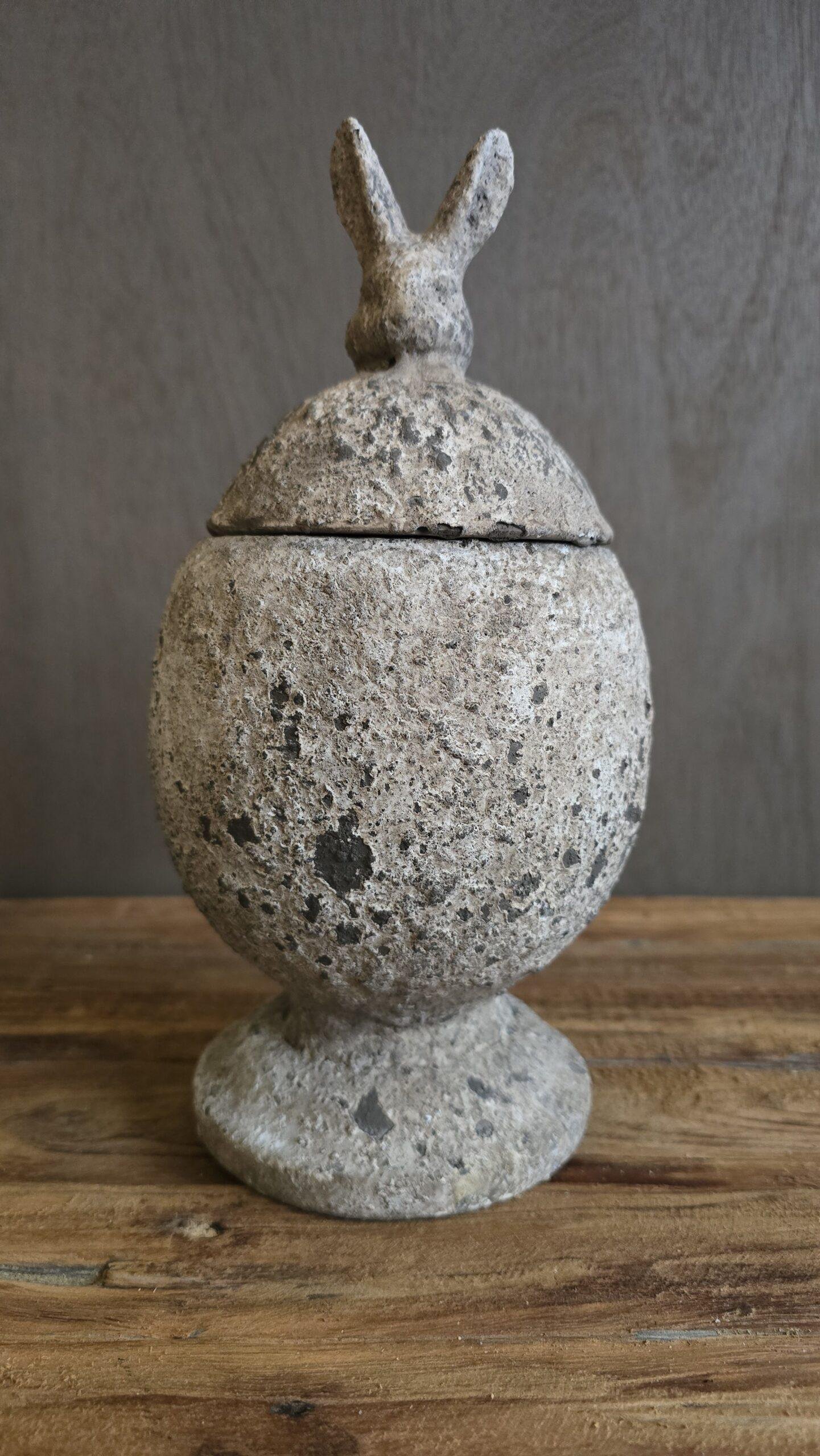 Stenen pot met deksel konijn M – landelijk sobere decoratiepot