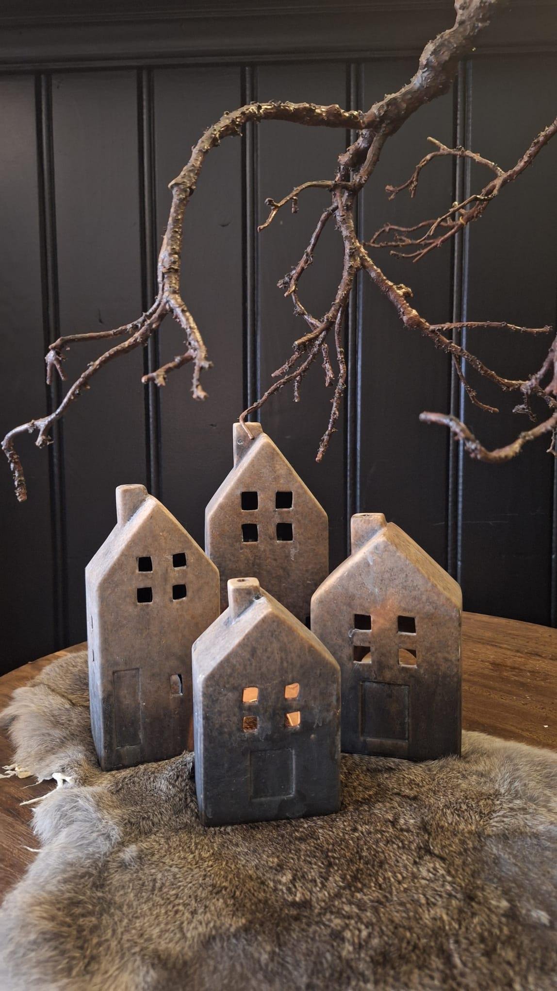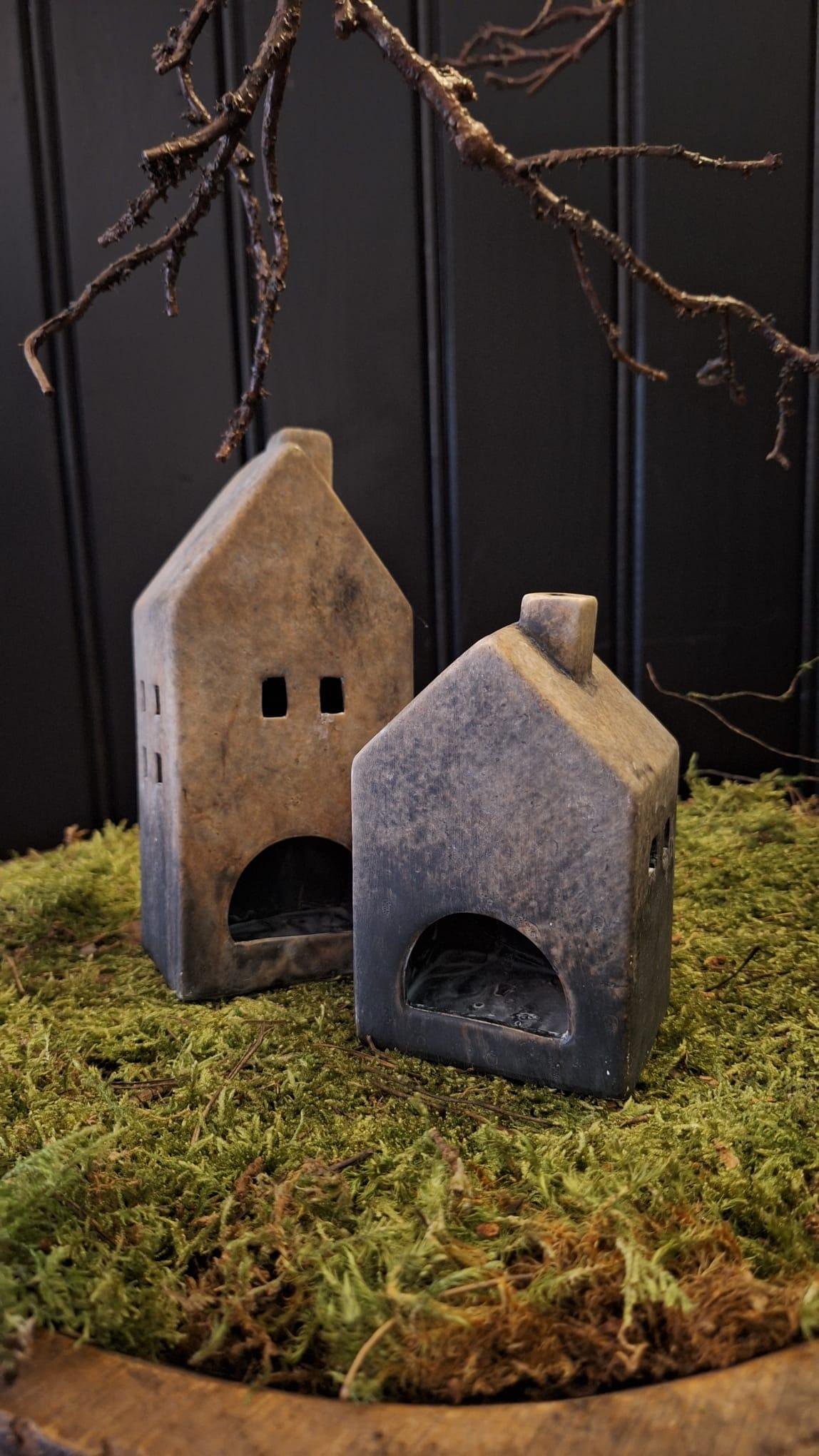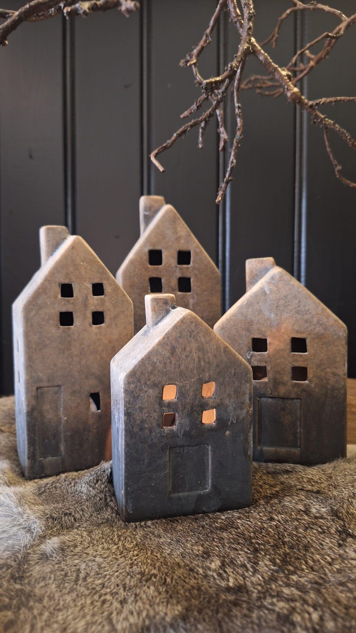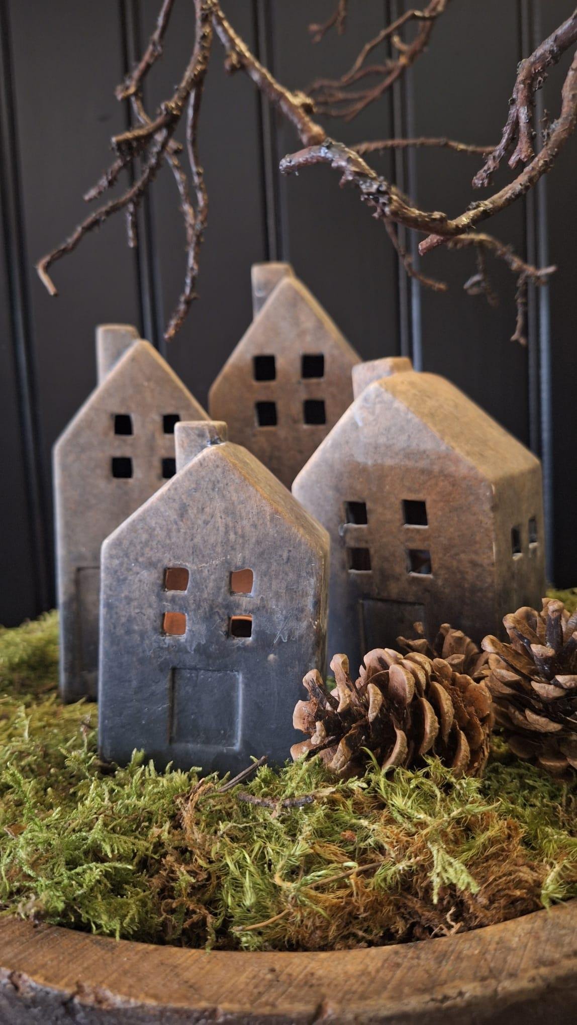 Dit theelicht huis is veelzijdig in gebruik. Zet het alleen neer voor een subtiel accent, of combineer meerdere huisjes voor een sfeervol ‘straatje’ op tafel, dressoir of vensterbank. Ook in combinatie met andere landelijke accessoires, zoals houten schalen, mosdecoratie of windlichten, komt het stenen huis prachtig tot zijn recht.