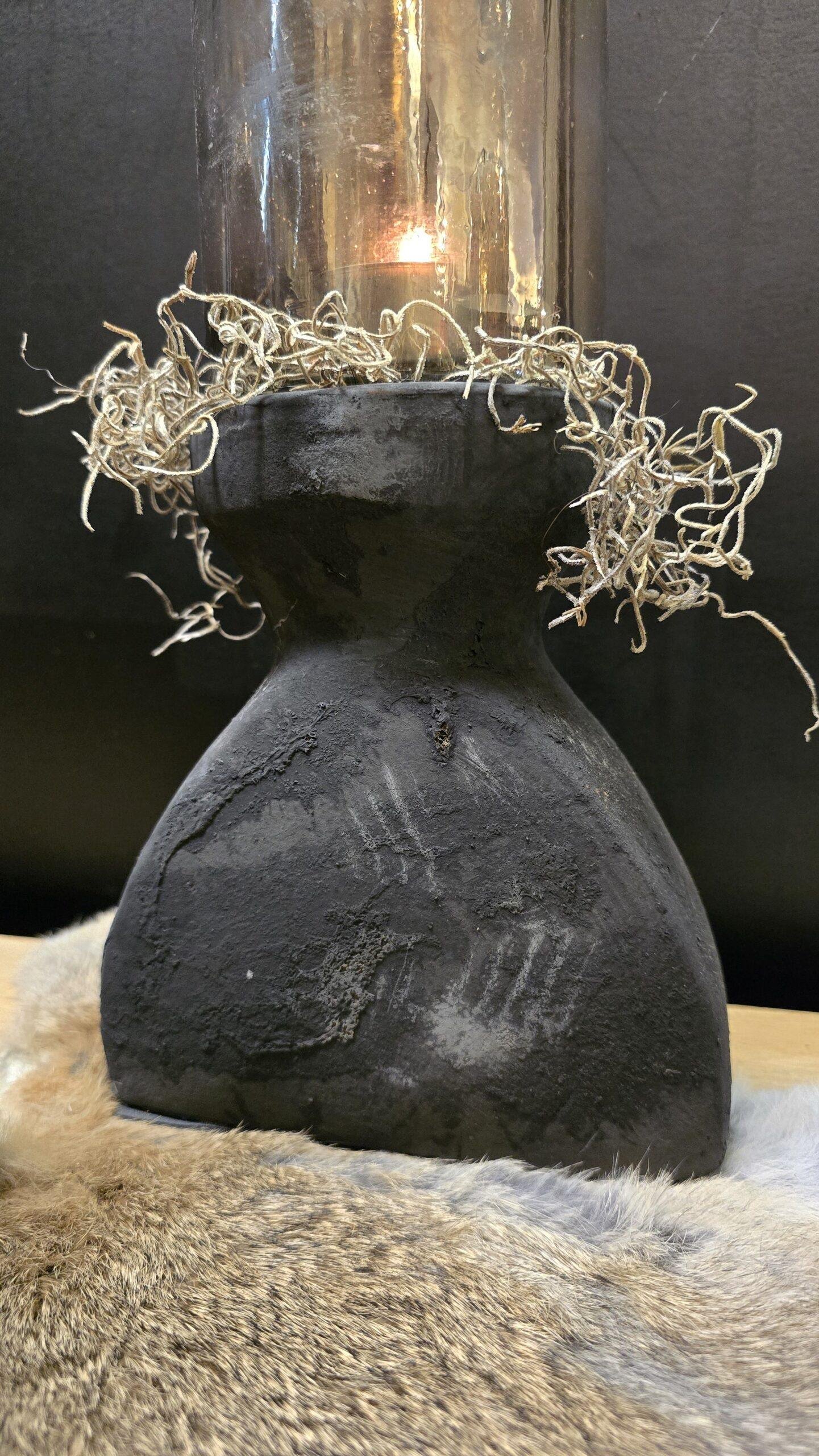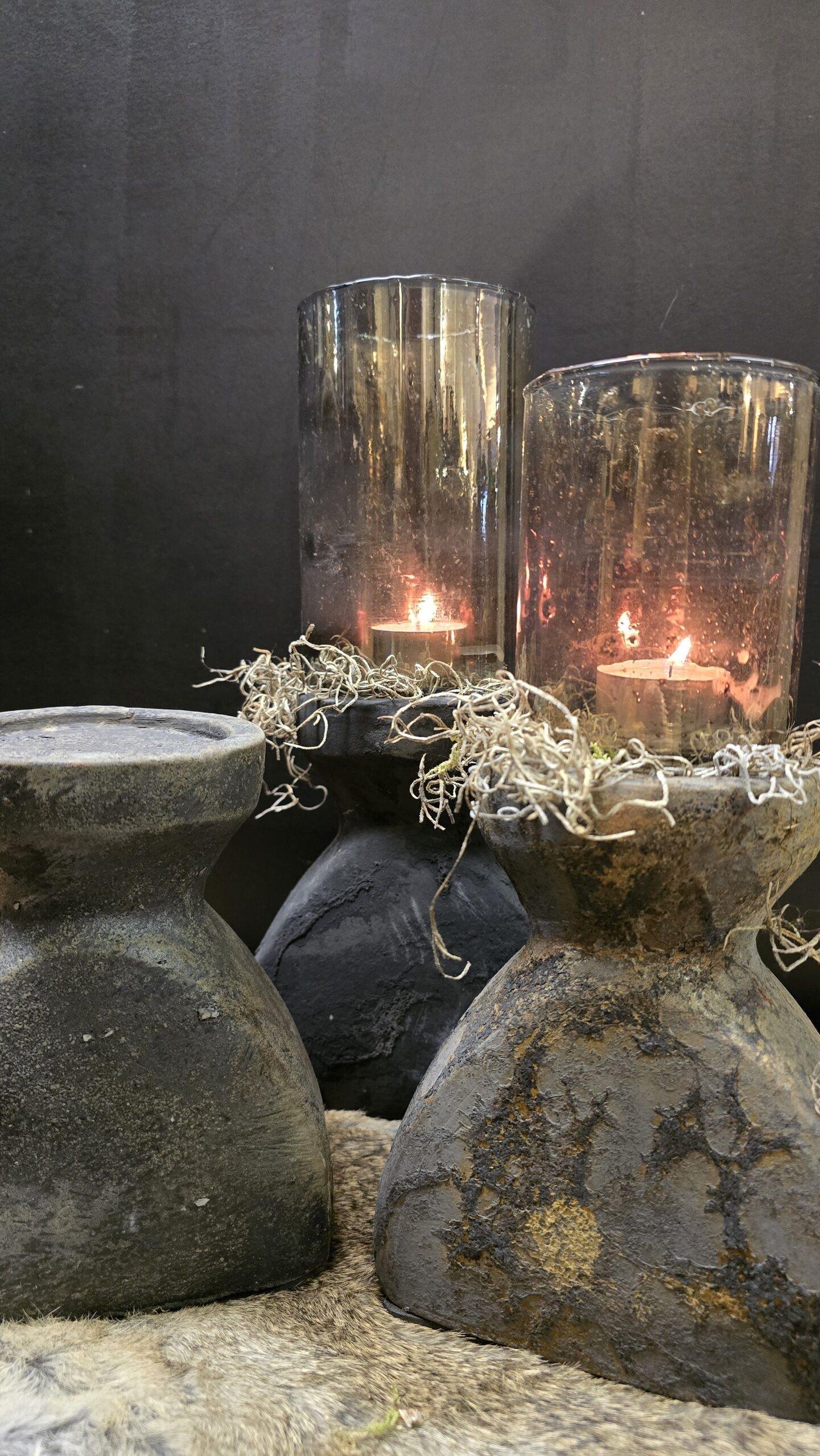 Houten kruik kandelaar met stoere, authentieke afwerking. Geschikt voor diner- of LED-kaarsen en mooi te combineren in elk interieur.
